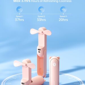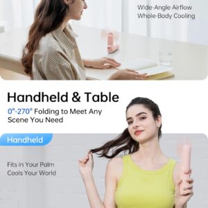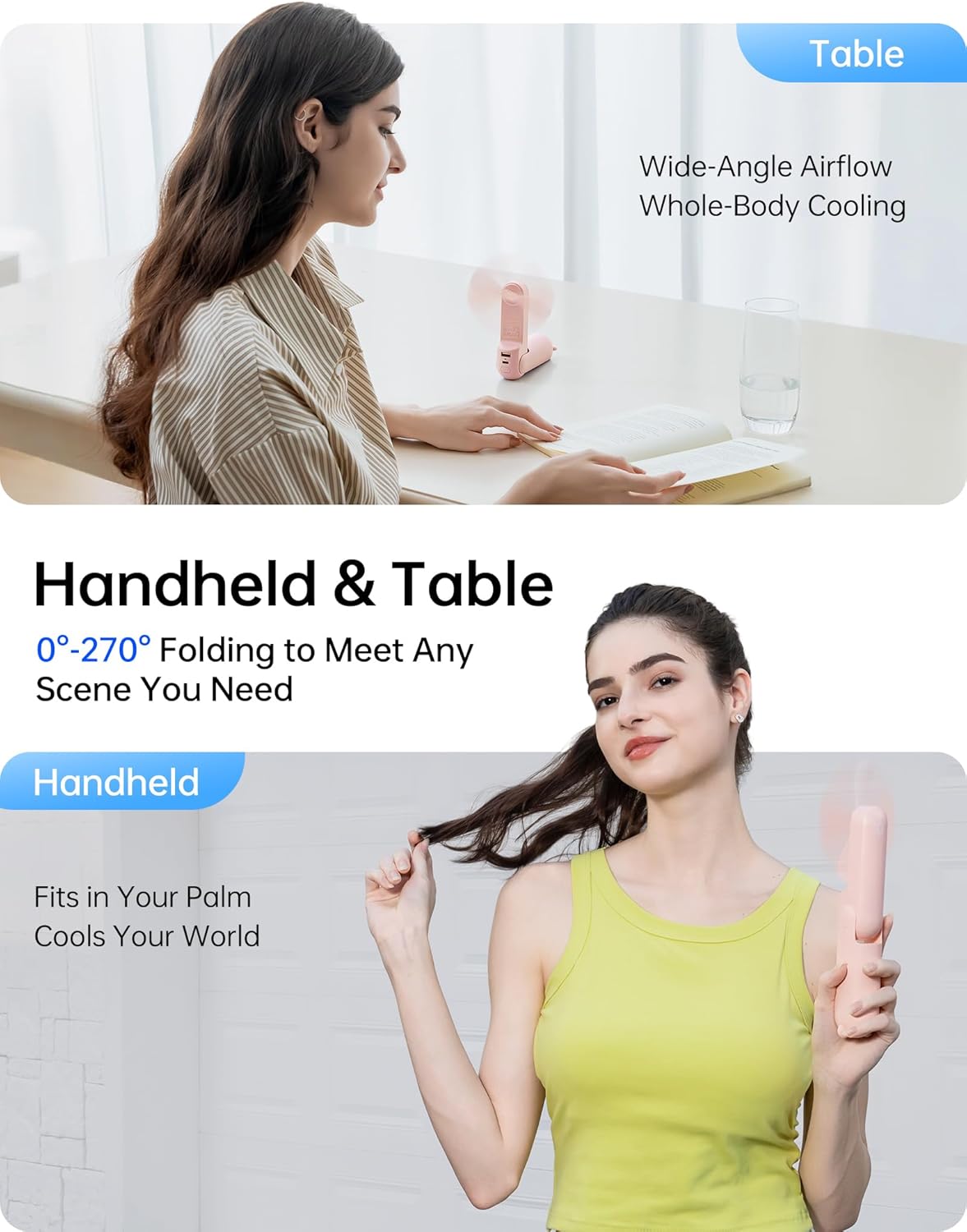 Foldable Design and Mini Size: The folding design makes it easy to be carried and stored. Besides, with the capsule shape(5.1*1.65*1.65 inch, weight: 6.38 OZ), this rechargeable fan can hide the fan blade, small and easy to slide into your pocket and purse.Gifts choice for Christmas & New Year