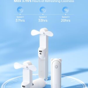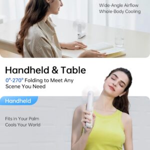 Foldable Design and Mini Size: The folding design makes it easy to be carried and stored. Besides, with the capsule shape(5.1*1.65*1.65 inch, weight: 6.38 OZ), this rechargeable fan can hide the fan blade, small and easy to slide into your pocket and purse.Gifts choice for Christmas & New Year.
