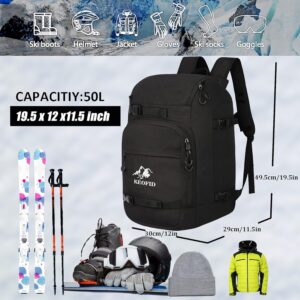 KEOFID 50L Ski Boot Bag Backpack, Waterproof Ski Bag, Travel Backpack for Ski Helmet, Snowboard