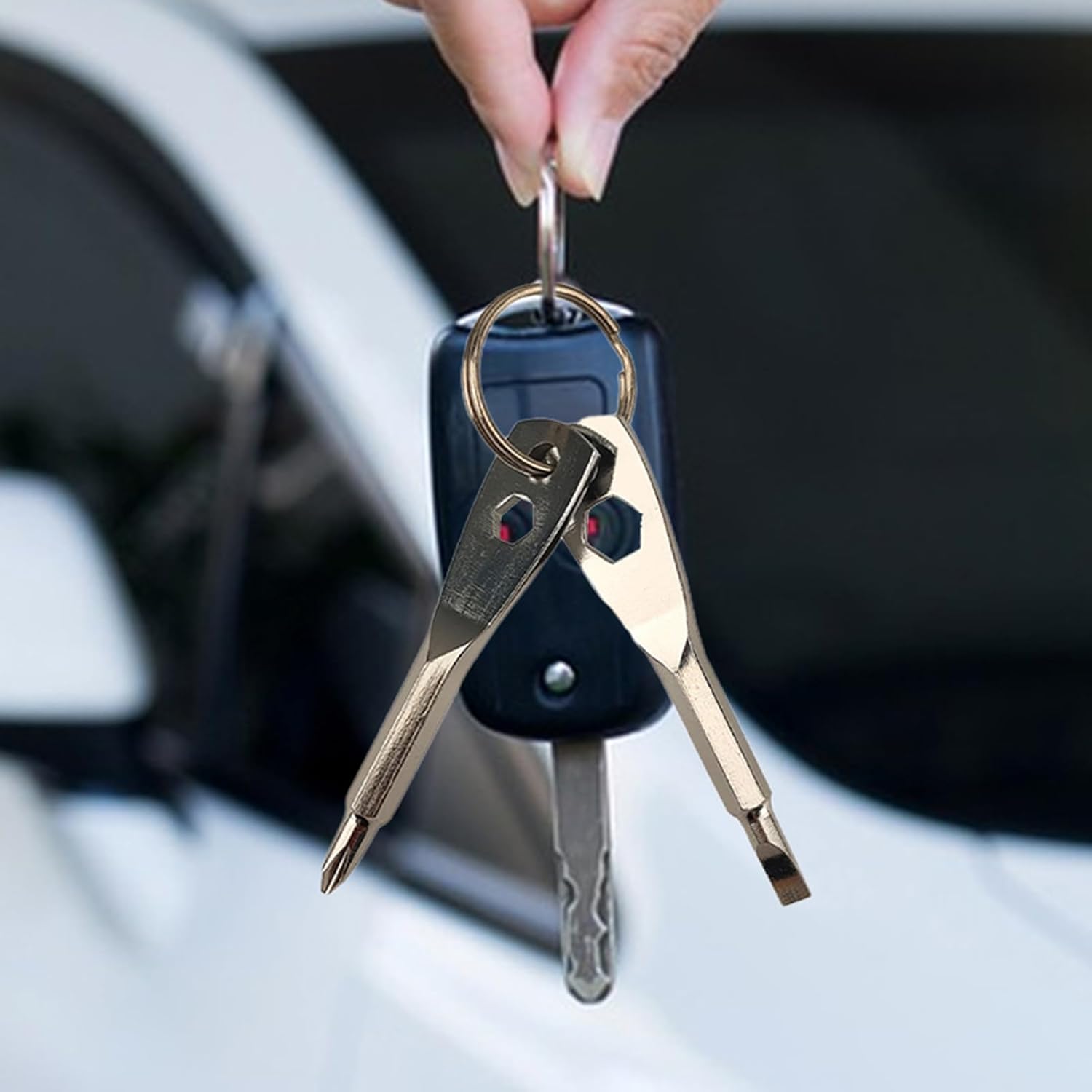 Enhanced Performance: Elevate your daily tasks with our keychain multi tool, featuring slotted, Phillips, and small hexagon screwdrivers and a key ring that improve convenience and productivity.