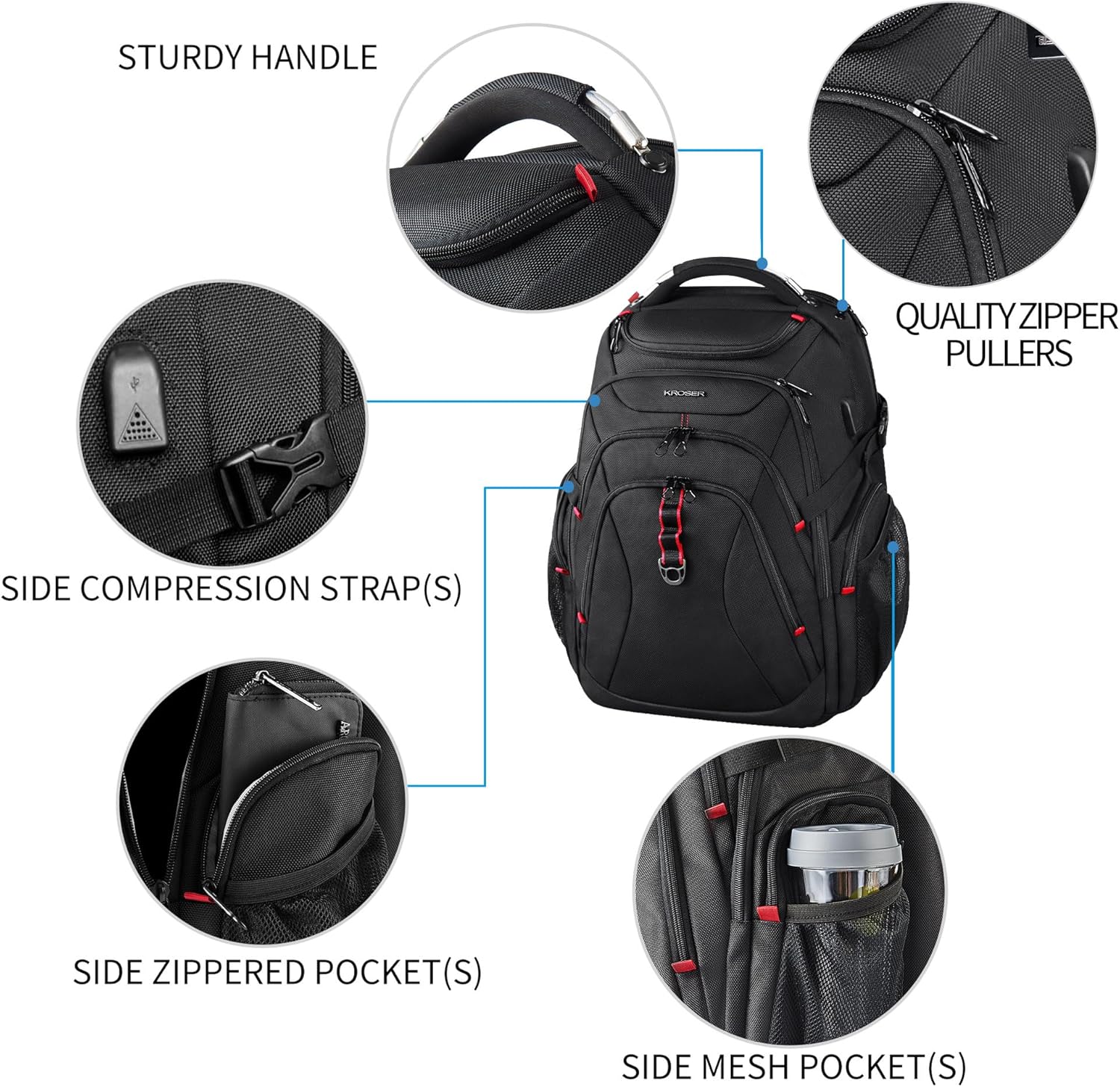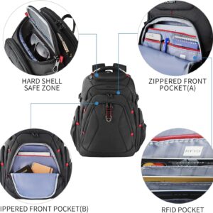 KROSER Travel Laptop Backpack 17.3 Inch XL Computer Backpack with Hard Shell Saferoom RFID Pockets Water-Repellent Business College Daypack Stylish Bag for Men/Women-Black