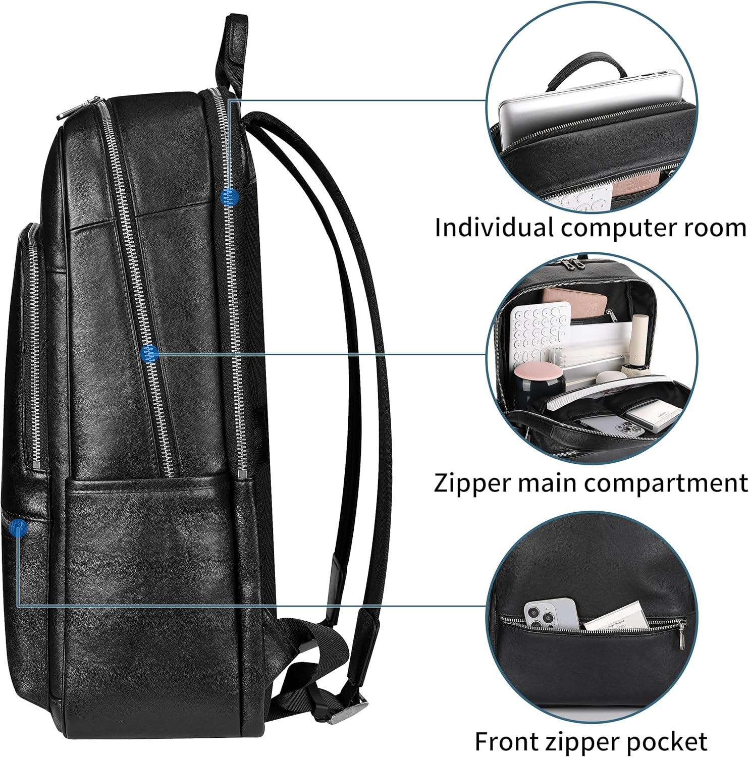 Leather laptop backpack for men’s travel