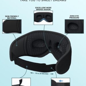 【3D Contoured Bluetooth Eye Mask】Based on ergonomics, LC-dolida sleep headphones bluetooth sleep mask is perfect for our face.The contours of the eyes area are deeper and your eyes can move freely. Zero pressure on eyes, the 3D bluetooth eye mask for sleeping perfectly solves the tightness of the flat eye mask,bring you a comfortable and long-lasting sleep. With adjustable strap the bluetooth sleep mask fits all size head, easy to adjust and not catch hair.Best sleep headphones for side sleeper