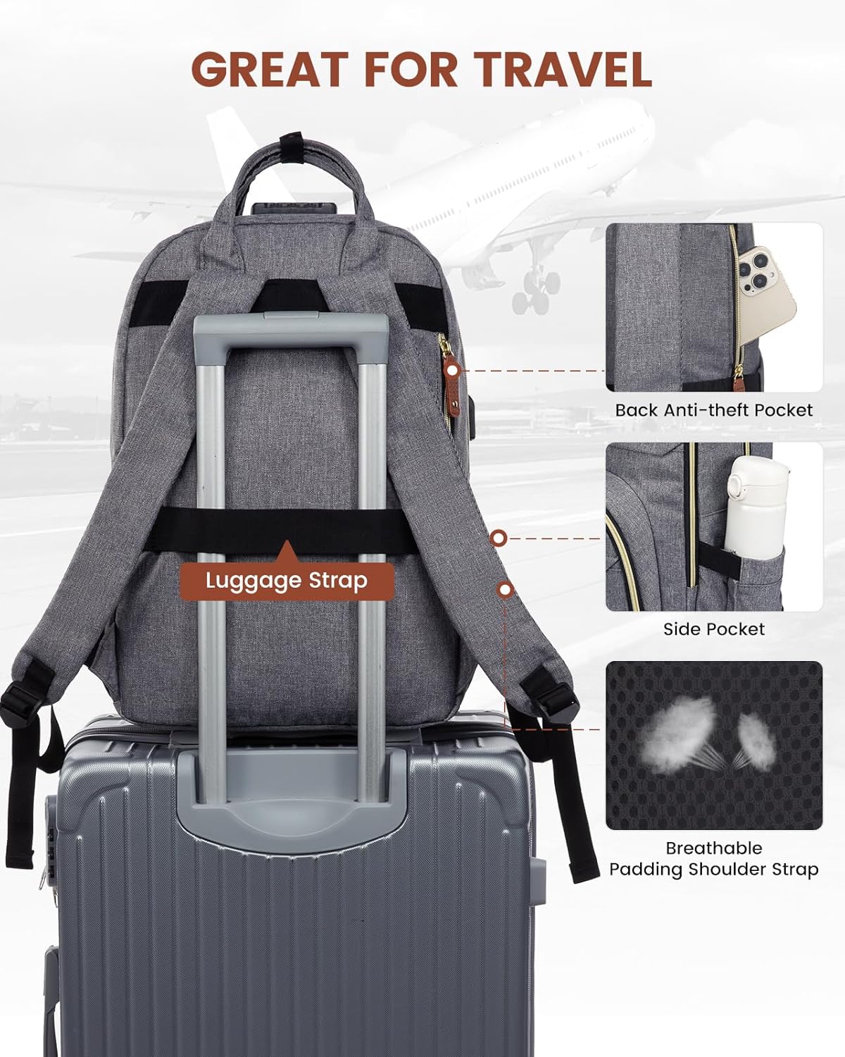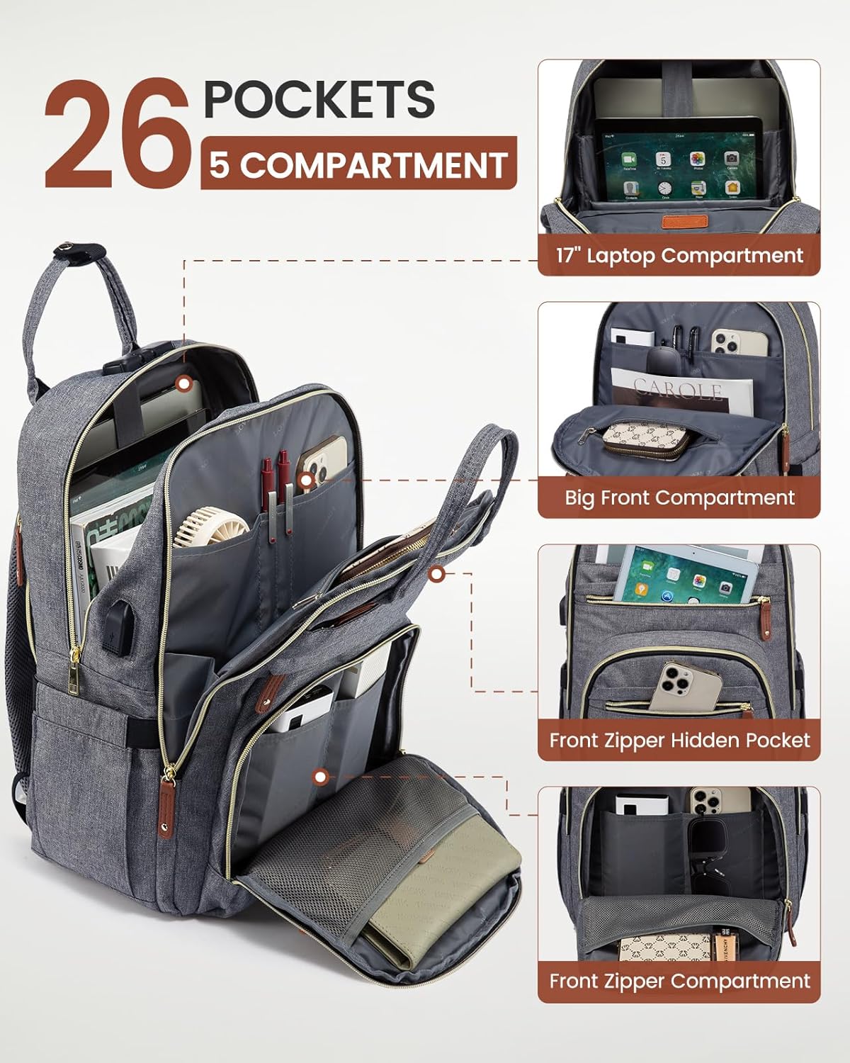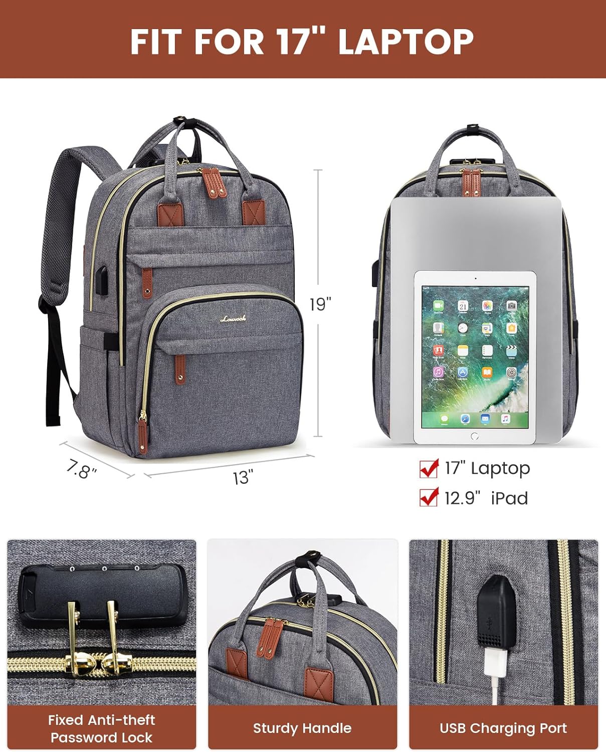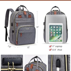 LOVEVOOK Laptop Backpack for Women, Unisex Large Capacity Travel Anti-theft Bag, Business Work Computer Backpacks Purse College Bag for Men, Casual Hiking Daypack, 17 Inch, Grey