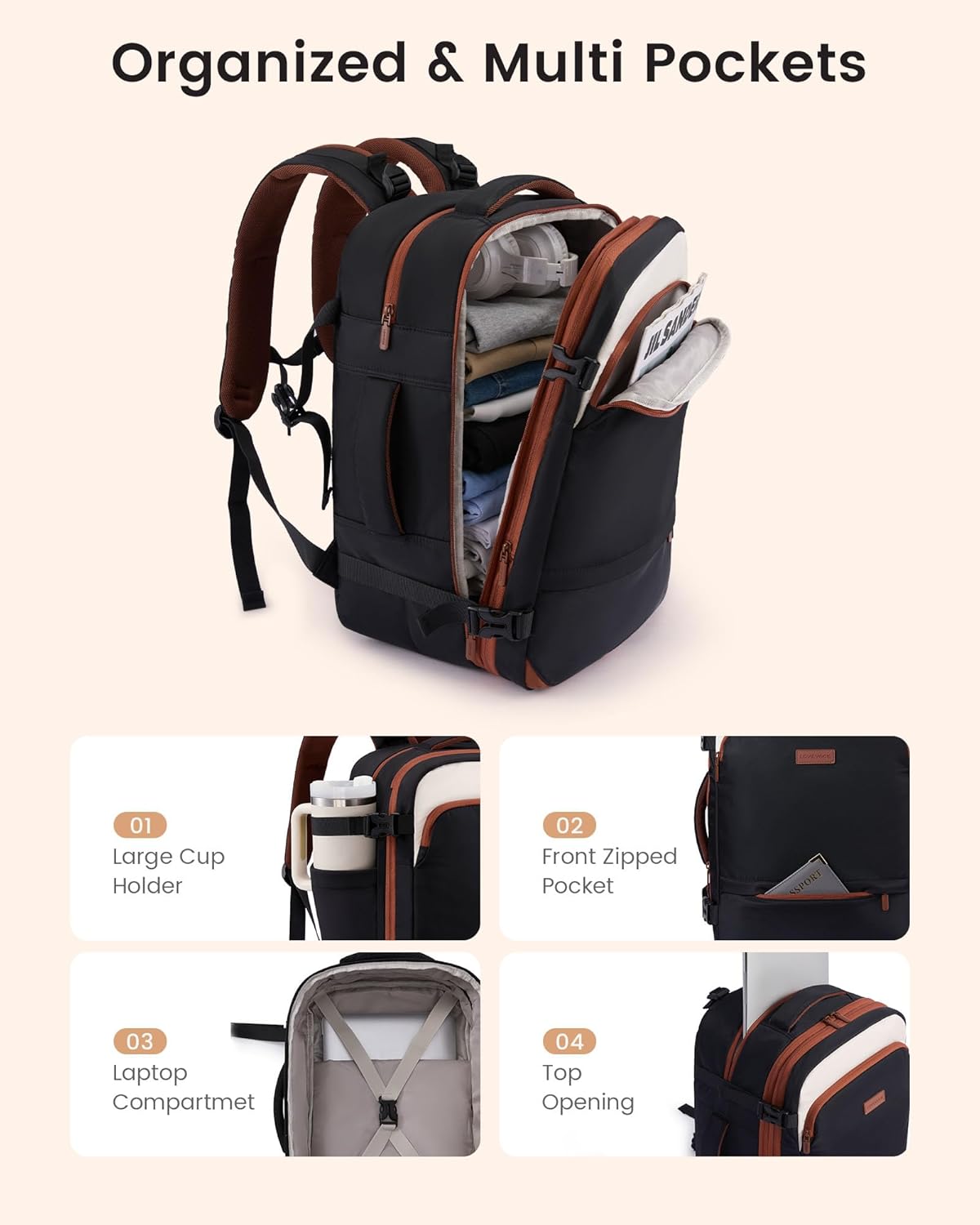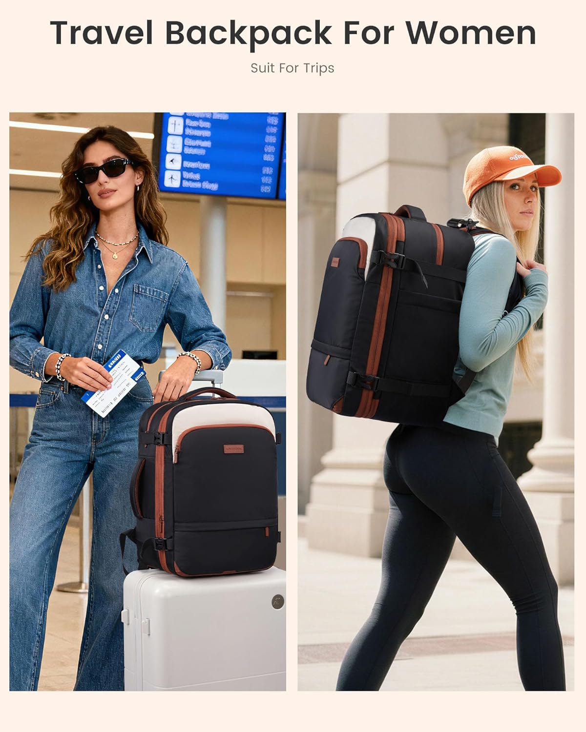 LOVEVOOK Travel Backpack for Women, 40L Large Carry On Backpack, Personal Item Travel Bag Flight Approved, Business Weekender Overnight Essentials Waterproof Back Pack With 2 Cubes, Fit 17 Inch Laptop