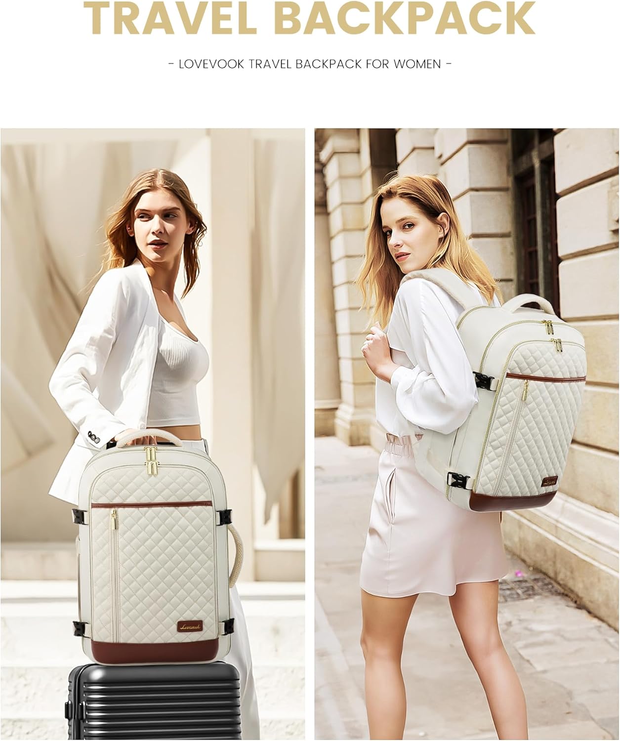 LOVEVOOK Travel Backpack for Women, Carry on Backpack for Airplanes,TSA Personal Item Travel Bag fits 15.6″ Laptop,Travel Essentials Carry On Bag Flight Approved with 3 Packing Cubes