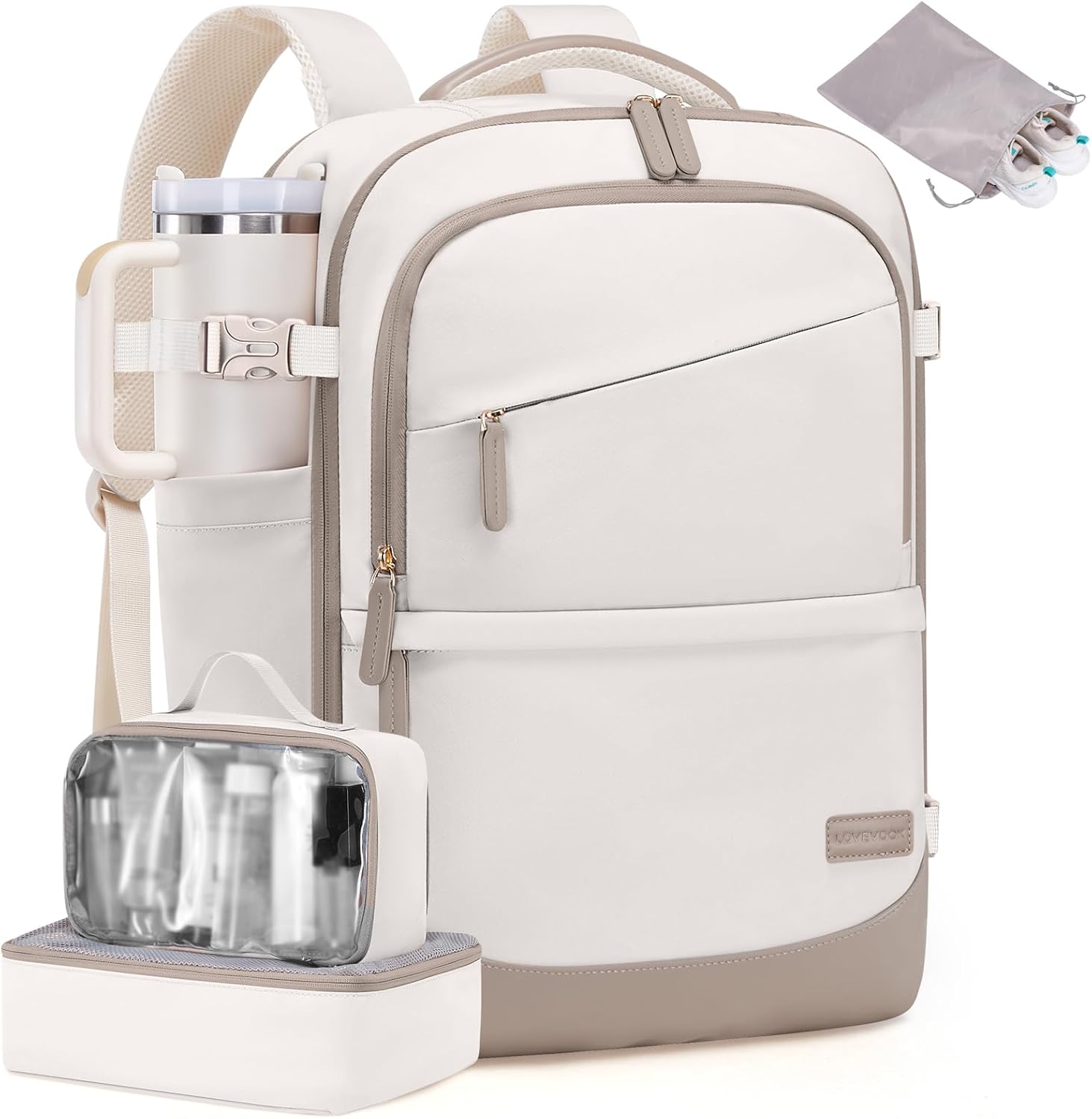 【3 Packing Cubes & Wet Pocket】: Includes extra 3 packing cubes-2 storage bags for underwear or cosmetics/toiletries and 1 shoe pouch, and a wet pocket of travel backpack carry on flight approved to separate damp items—ensuring everything is orderly and within reach.