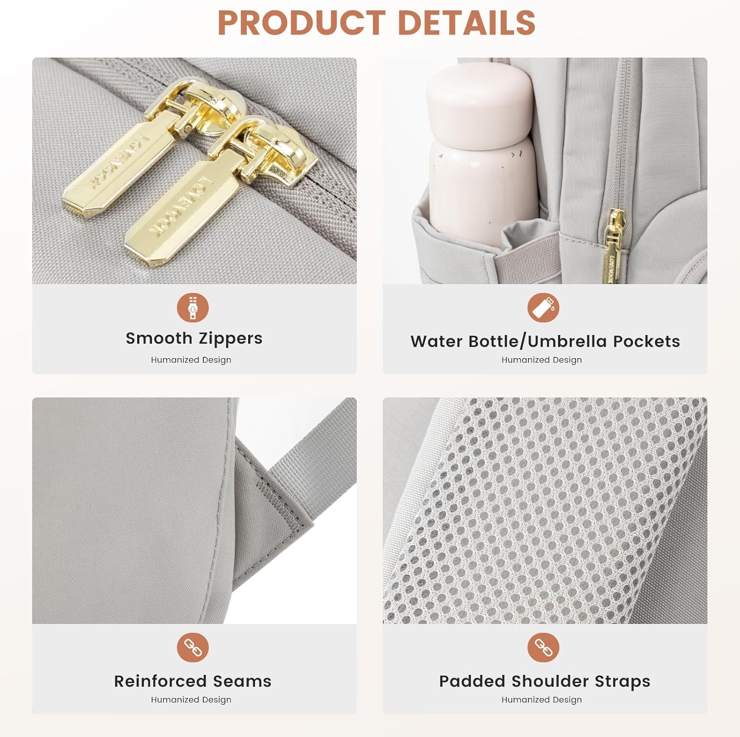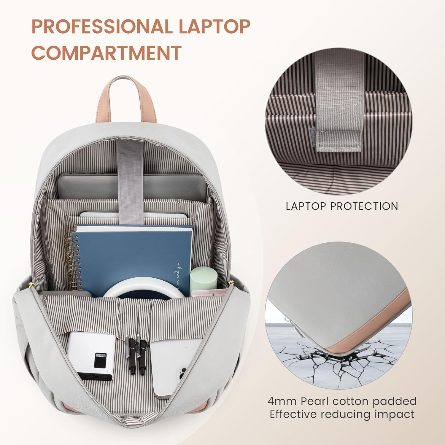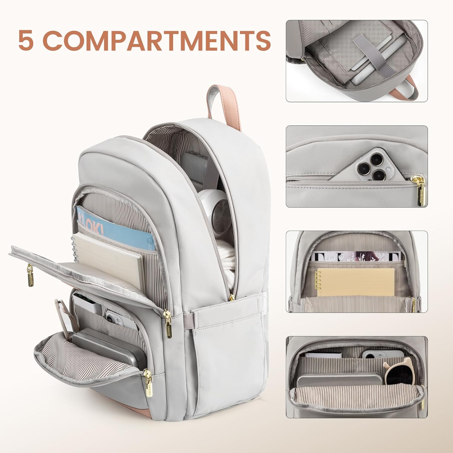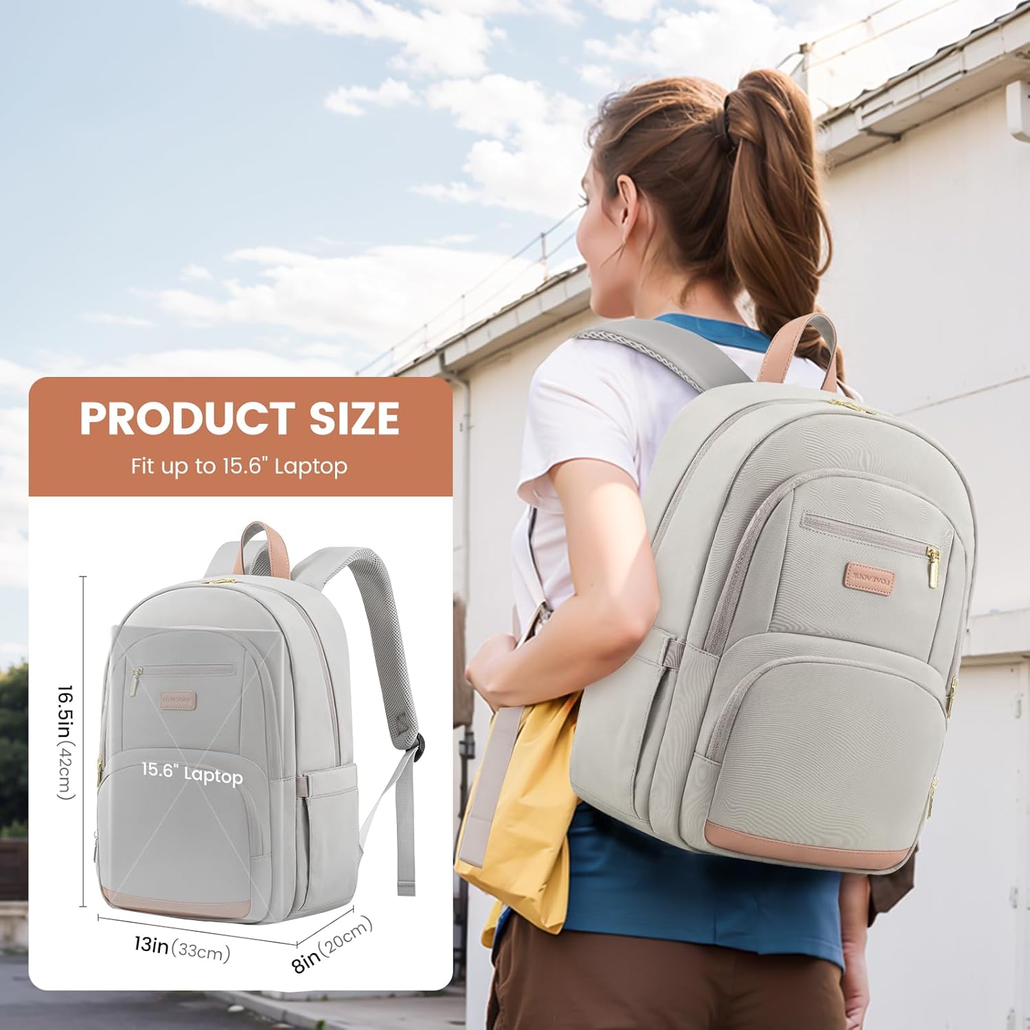 LOVEVOOK Travel Laptop Backpack for Women, Waterproof Work Backpack Fits 15.6 Inch Laptop, Large Computer Backpack for College, Grey