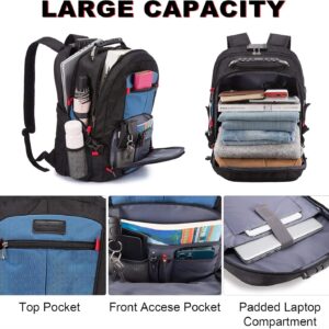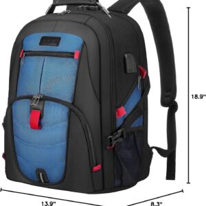 【LARGE CAPACITY & MULTIPLE POCKETS】 Men travel backpack owns 18 independent pockets for large storage and organization for small items. External dimensions: 13.9*8.3*18.9 Inches(L*W*H). Capacity: 45 L. Main padded compartment with dual zipper fit for 15.6, 17 and up to 17.3 inch laptop and padded compartment for Ipad.(Since the laptops’ appearance of different brands is different, this backpack is suitable for most 17.3-inch computers, but if laptops’ form is too large, it may not be suitable.