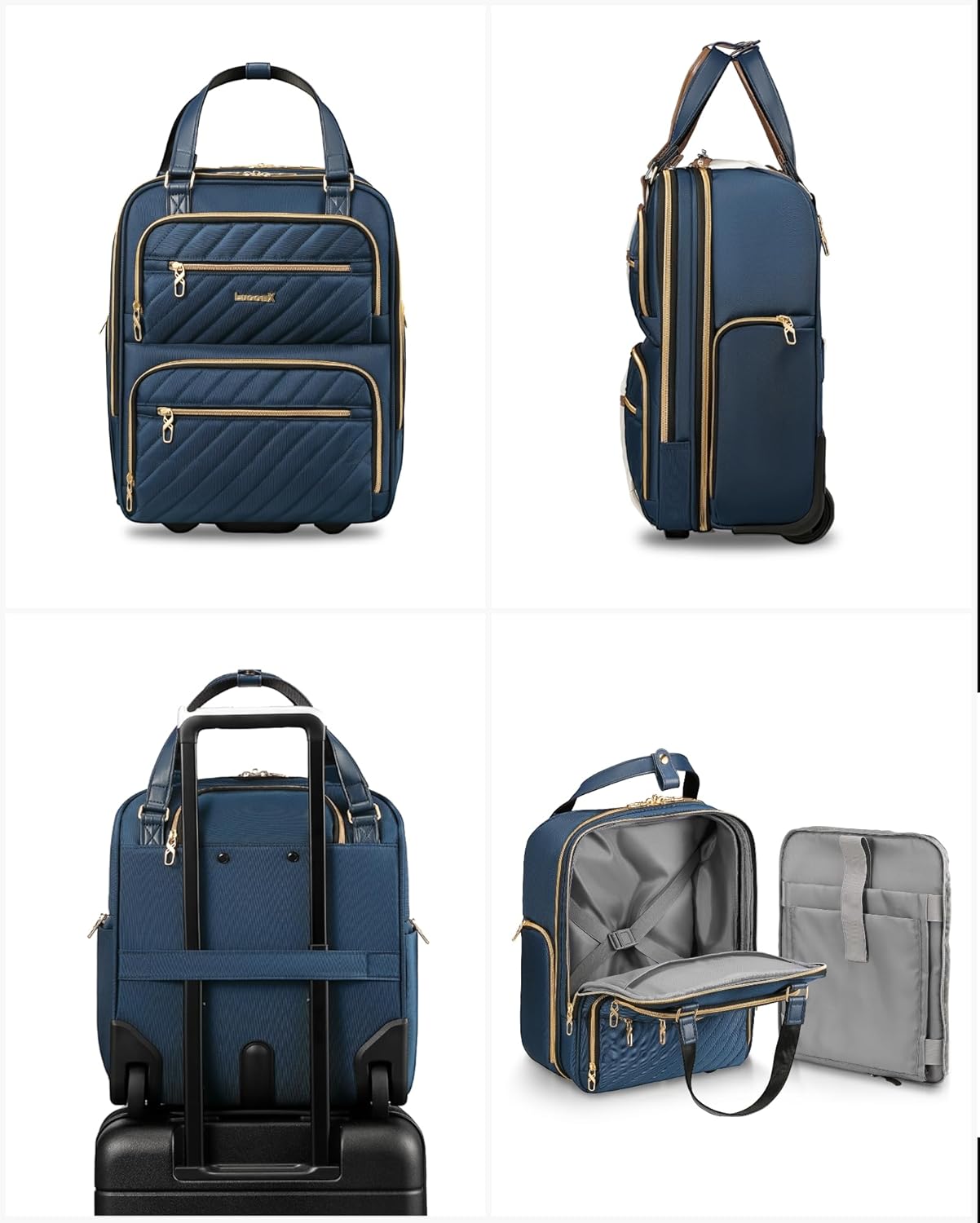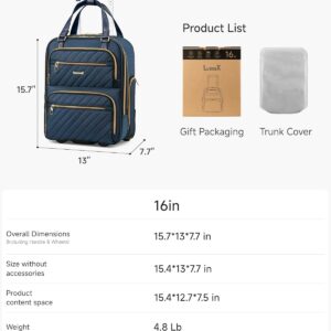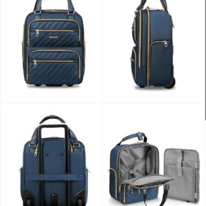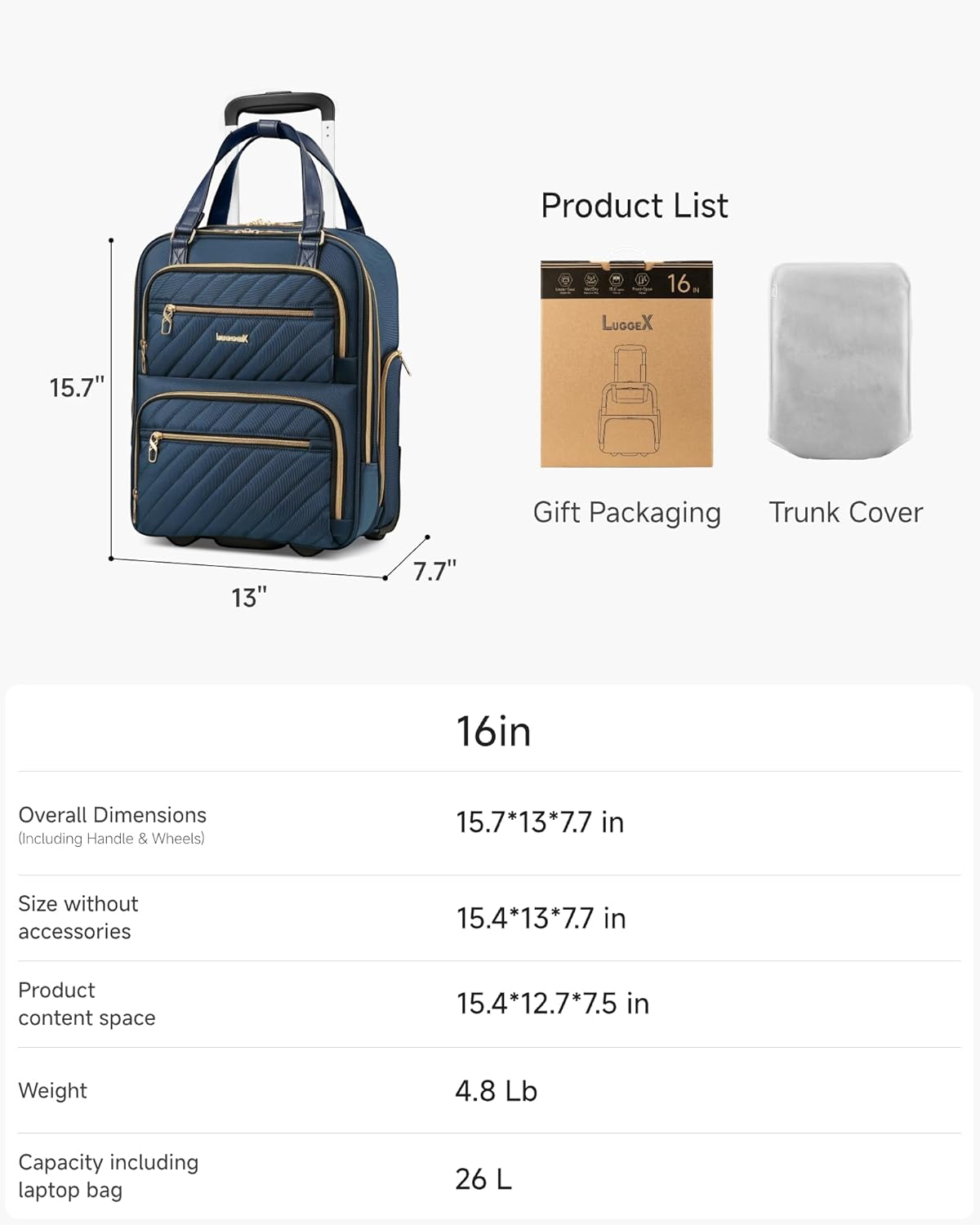 LUGGEX Underseat Carry On Luggage with Wheels, Stylish Lightweight Under Seat Luggage, Soft Sided Personal Item Suitcase for Short Trip (Blue, 16 Inch)