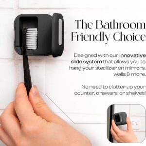 UV TOOTHBRUSH HOLDER WALL MOUNTED: Enjoy a clutter-free bathroom with our sleek toothbrush sanitizer, ideal for both home and travel. Attach it effortlessly to your bathroom mirror or wall using our innovative slide system. Our wireless UV toothbrush covers simplify maintaining a clean toothbrush, bringing convenience without clutter to your daily routine.