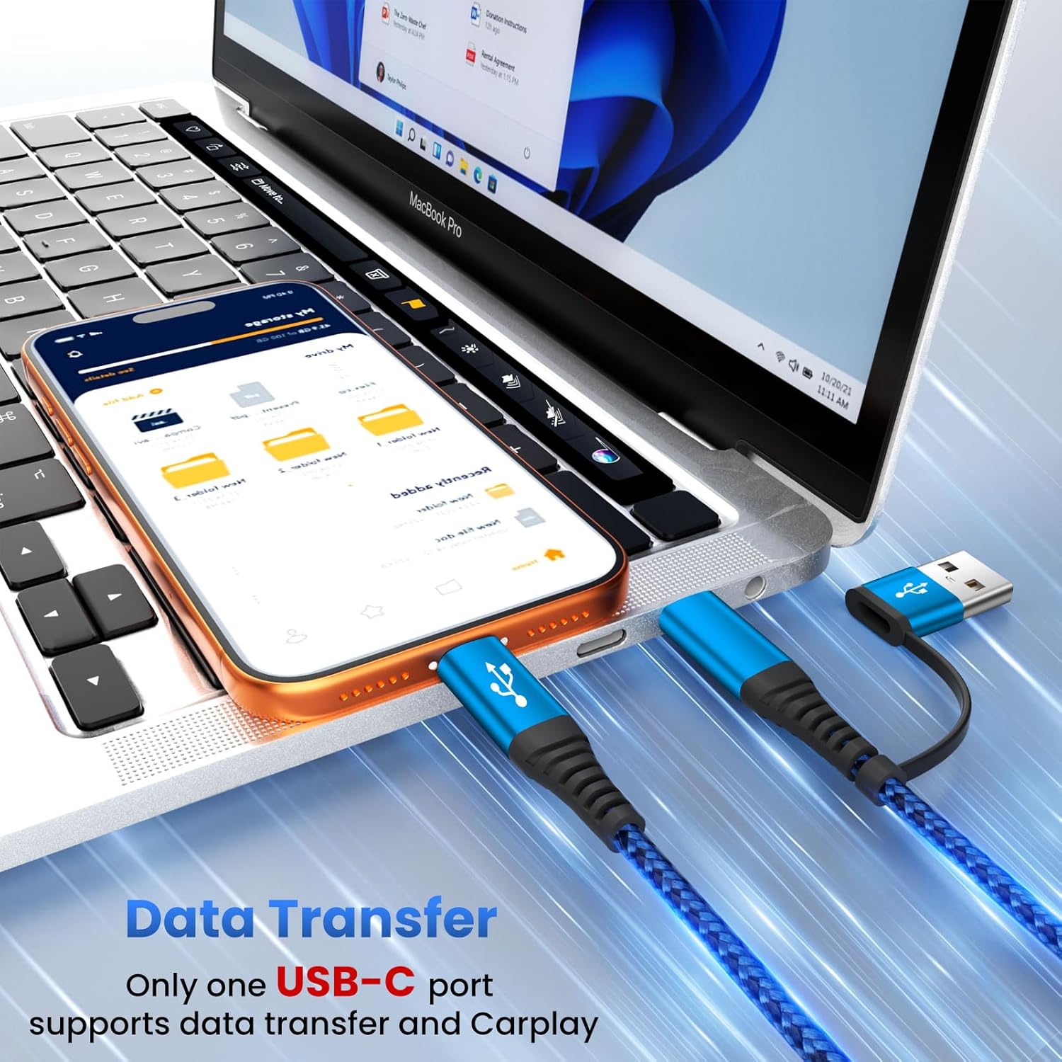【Portable Travel Essentials】iWatch charger cable with a total length of 5FT (4 feet main line and 1 foot branch), offers the most suitable and everyday length combination, accommodating different daily scenarios. It’s easily storable in your travel bag and must have car accessory, ideal for car, flight, hotels, cruises, office, college living, Europe vacation, road/business trip, camping or RV adventures(Note: Only ONE USB-C Connector Support Android auto and CarPlay and Data Sync, 480Mbps)