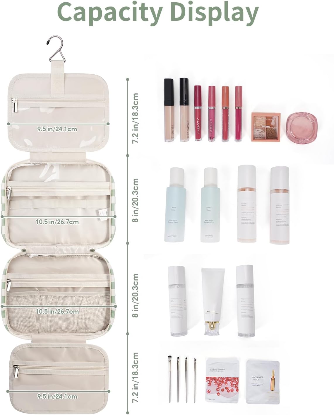 NOT BULKY DESIGN – Large Capacity yet compact design, weighing 14 ounces. large metal hook allows hanging the toiletry case from towel rack, coat hook or whereever is available, making your toiletries and cosmetics displayed well for easy access