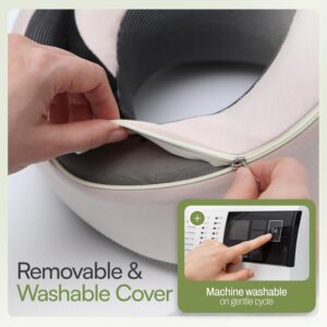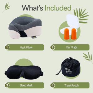 Complete sleep kit with hygienic washable cover Keep your pillow clean for every trip with the easily removable zip cover that is machine washable on a gentle cycle. The set includes a bonus ergonomically designed 3D sleep mask and noise-canceling earplugs for a fully immersive rest experience anywhere.