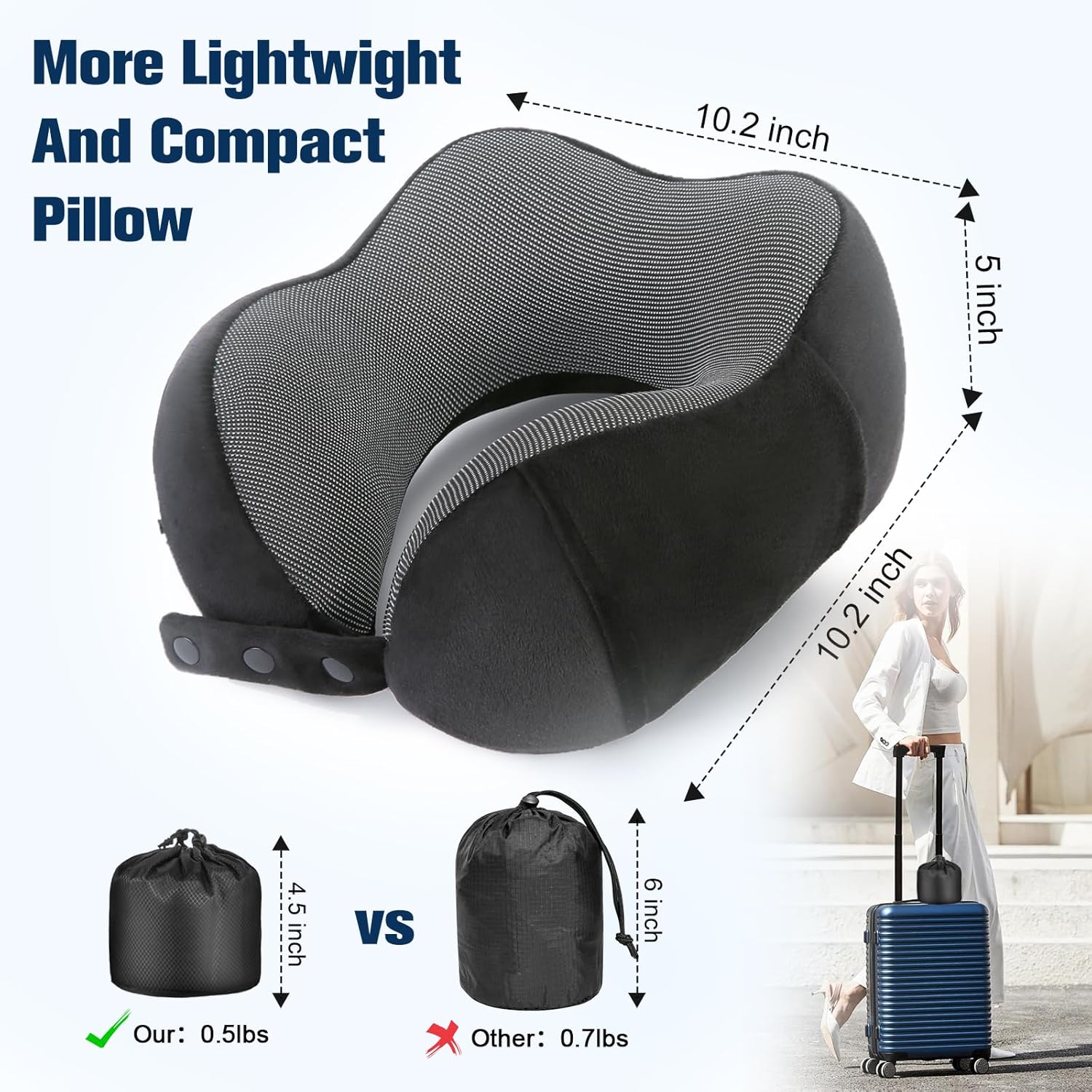 High Quality Memory Foam: The airplane neck pillow is filled with high-quality memory foam, making it soft and able to effectively alleviate neck pain during travel. The memory foam is covered with a lining to protect it from getting dirty and oxidized. Note: Do not wash or expose the foam, simply place it in a well-ventilated area
