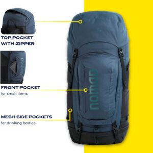 NOMAD Batura Backpack – Premium 55L Pack with Rain Cover Included | Lightweight Rucksack for Traveling, Hiking, Camping, Outdoor Sports (Dark Navy)
