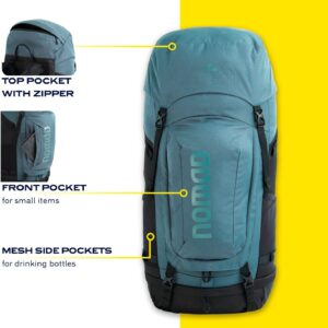 NOMAD Batura Backpack – Premium 70L Pack with Rain Cover Included | Lightweight Rucksack for Traveling, Hiking, Camping, Outdoor Sports (Steel Blue)