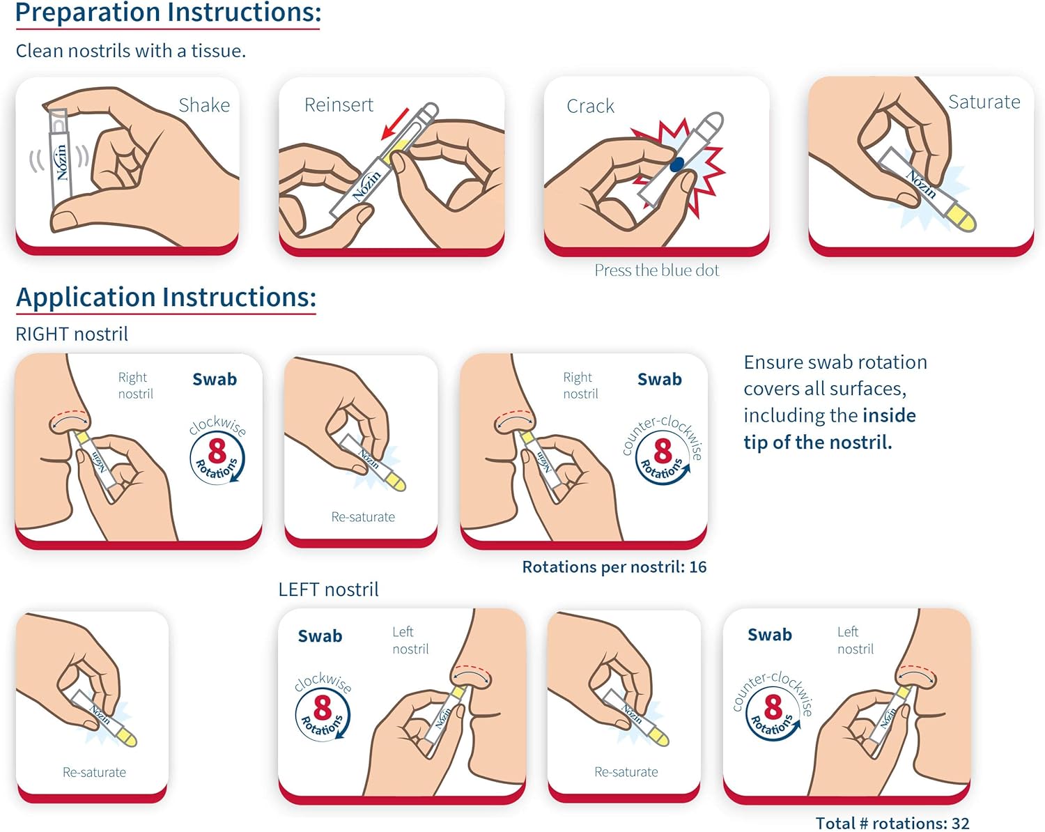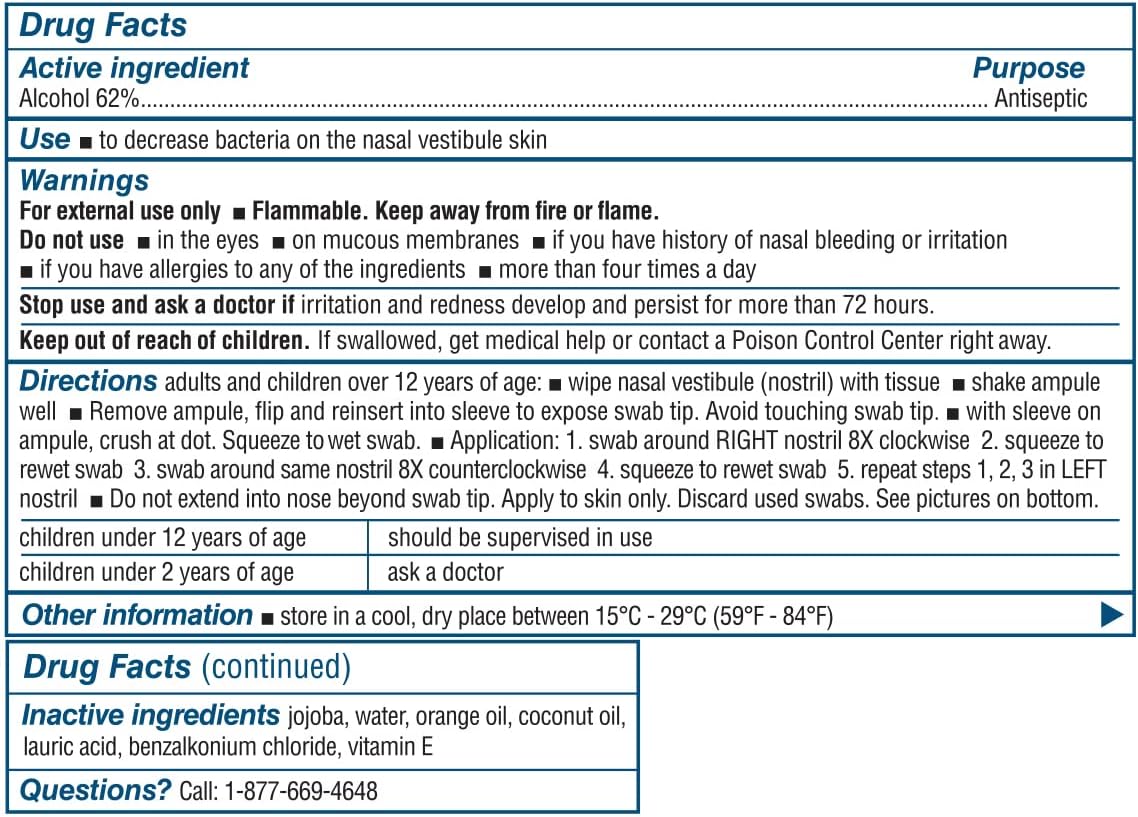 Combined with hand washing/sanitizing, using Nozin Nasal Sanitizer to kill germs on the nasal vestibule skin is an effective way to help prevent the spread of germs that may cause infection. Recommended by health professionals.