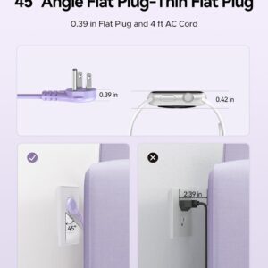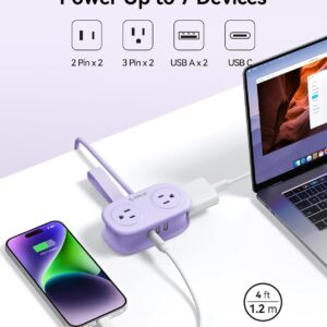 ORICO 4FT Purple Travel Power Strip with 4 AC Outlets, 2 USB-A Ports, and 1 USB-C Port, 45° Flat Plug Extension Cord with Non Surge Protector for Travel/Home/Dorm/Office-AP3