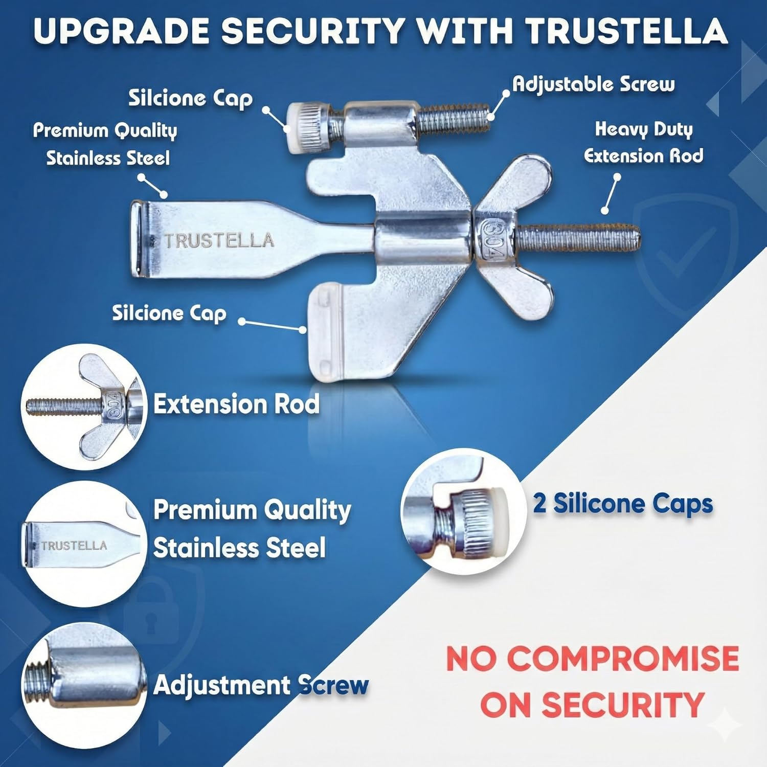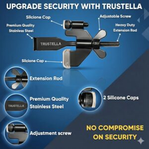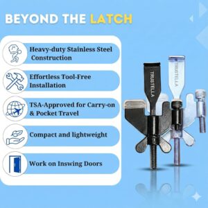 The Trustella Portable Lock provides extra security when you need it most. Make your door the first line of defense with a super lock made easy. The Trustella Portable Lock is an innovative device that shoulders fears and boosts confidence with a few easy twists. Compatible with a wide range of inward-opening hinged doors. Tool-free setup Silicone Caps prevent scratches and stop jiggling.