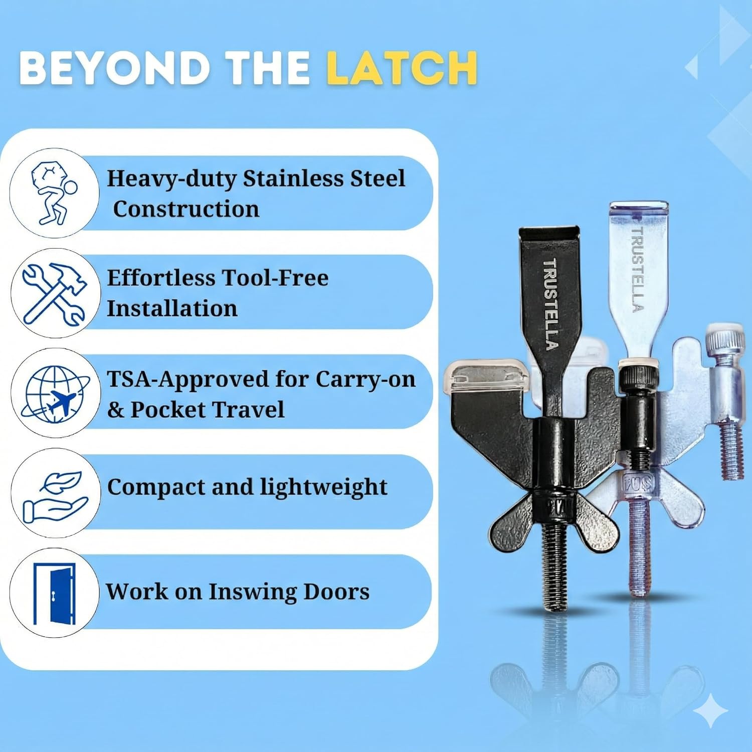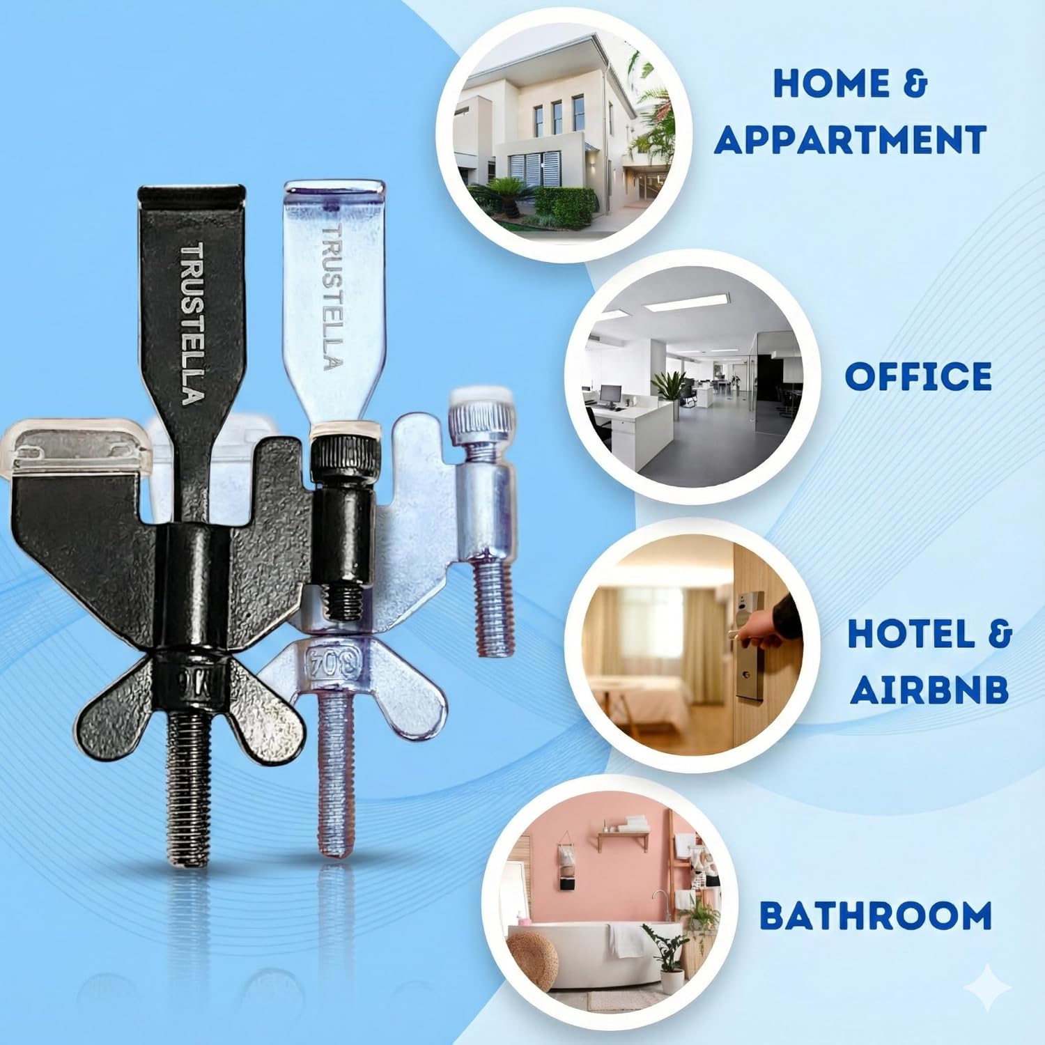 Original Trustella Heavy-Duty Portable Door Lock with Stainless Steel Build. Perfect for Home, Travel, Hotels, and Apartments for Inward-Opening Doors with a 2 mm Gap. (Silver/Black)