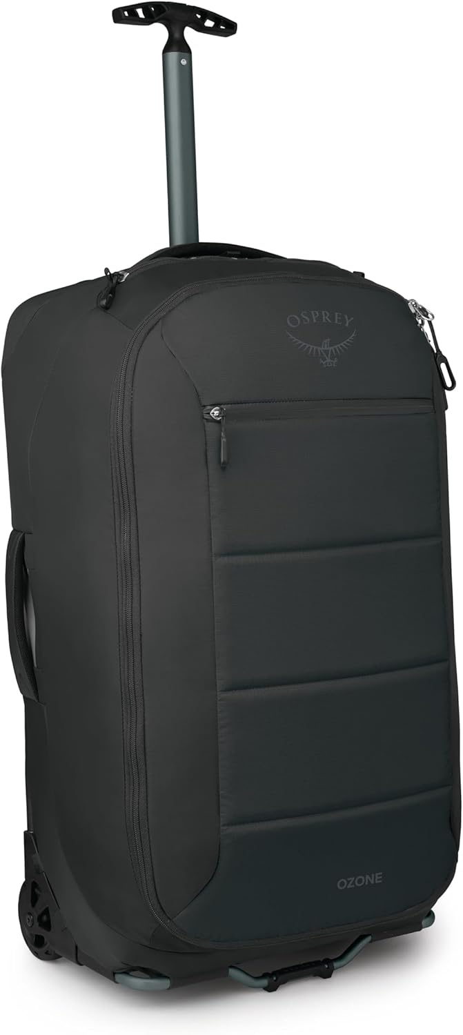 Osprey Ozone 2-Wheel 80L/27 Checked Luggage – Lightweight Rolling Bag with High Clearance and Oversized Wheels – Travel Suitcase with Mesh Organization, Trolley Handle and Add-a-Bag Strap, Black