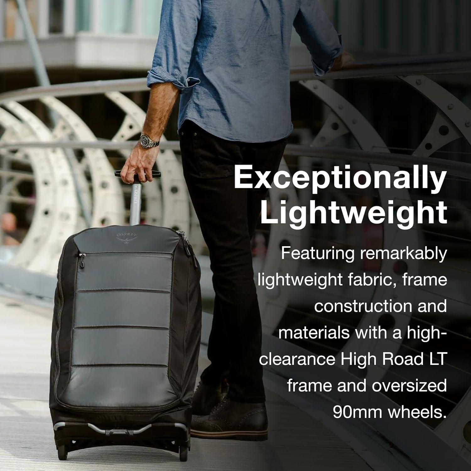 Oversized All-Terrain Wheels – Equipped with rugged 90 mm wheels and high clearance, this rolling travel bag glides smoothly across terminals, sidewalks or uneven pavement with ease.