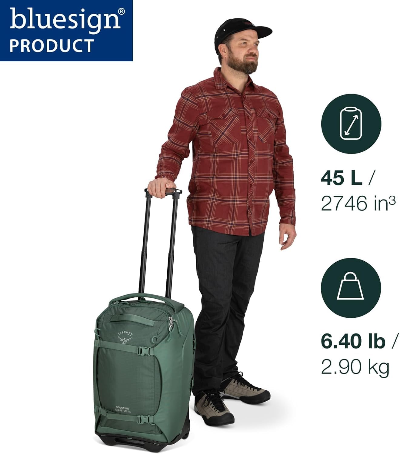 Osprey Sojourn 22″/45L Wheeled Travel Backpack with Harness, Koseret Green