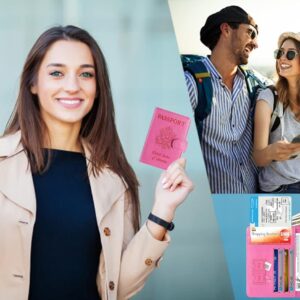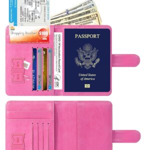 Passport Holder Cover Wallet RFID Blocking Leather Card Case Travel Accessories for Women Men (Pink)