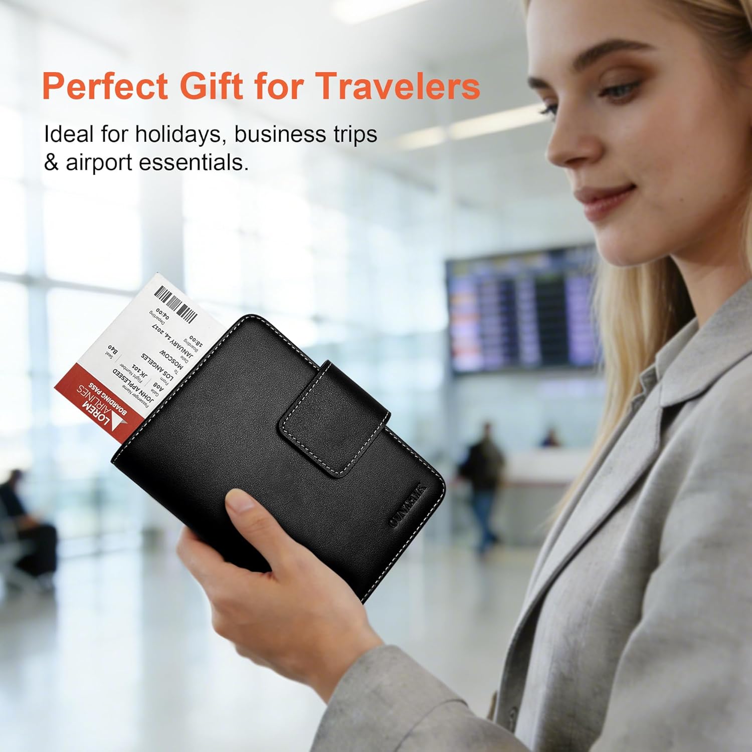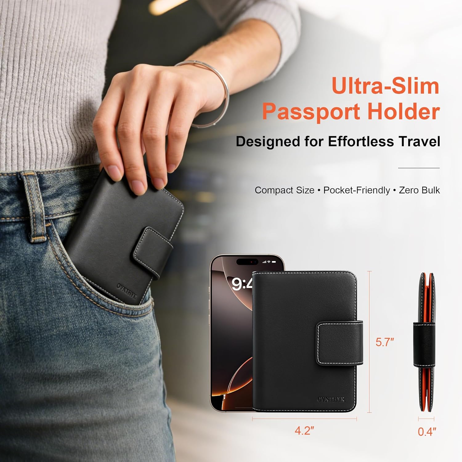 【Essential Valentine’s Gift】Classic black passport holder with vibrant orange lining, sleek two-tone design presented in an elegant gift box – perfect travel gift for your loved one