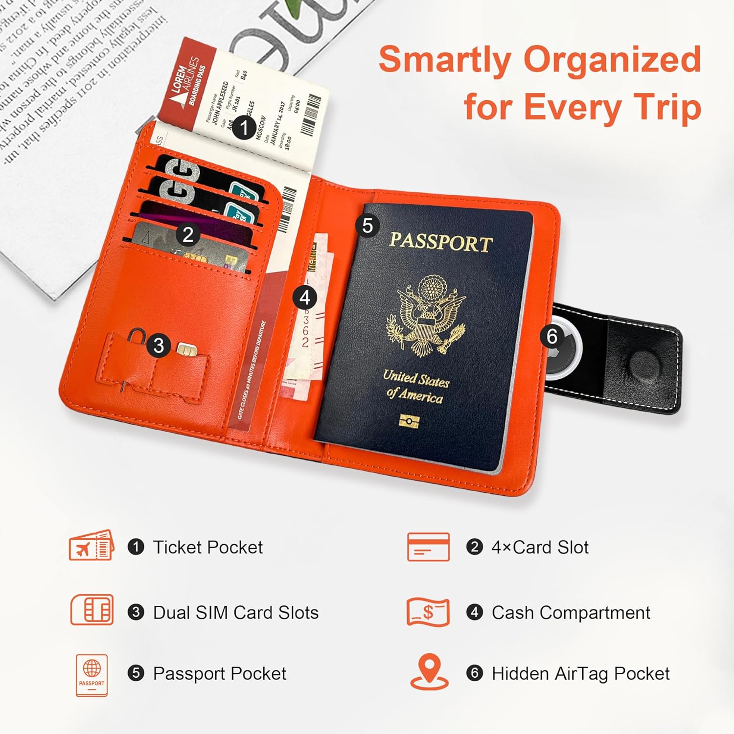 【Passport Wallet with AirTag Slot】Hidden AirTag slot behind the magnetic closure (AirTag not included) provides a secure place for a tracker, making it easy to locate your passport holder and avoid losing it. The strong magnetic clasp ensures a firm closure, giving you extra peace of mind for worry-free travel