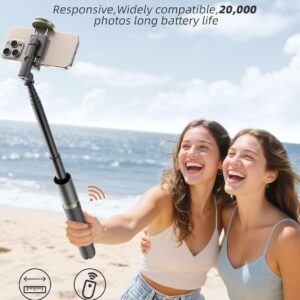 Detachable Wireless Remote for Easy Shooting: This selfie stick for iPhone supports up to 33 feet range, is compatible with both iOS and Android devices, and offers quick pairing and easy use. The remote can be stored in the handle to prevent loss and securely holds smartphones 2.2 to 3.7 inches wide.