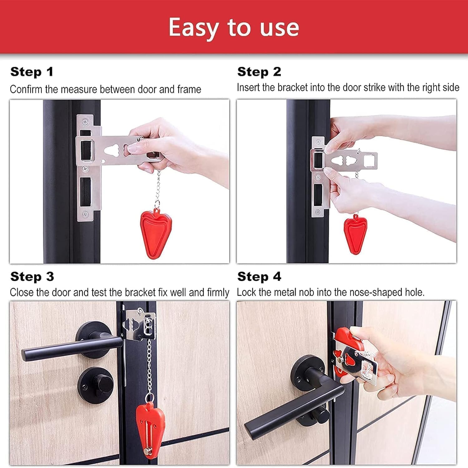 Portable Door Lock & Door Stop Alarm Set, Dual Protection Home Security Door Kit, Travel Hotel Lock Devices Pocket Self Defensey Tools for Traveling Hotel Home Apartment,Red