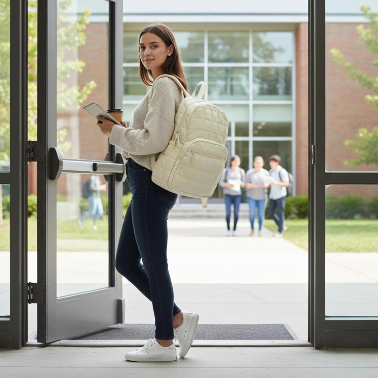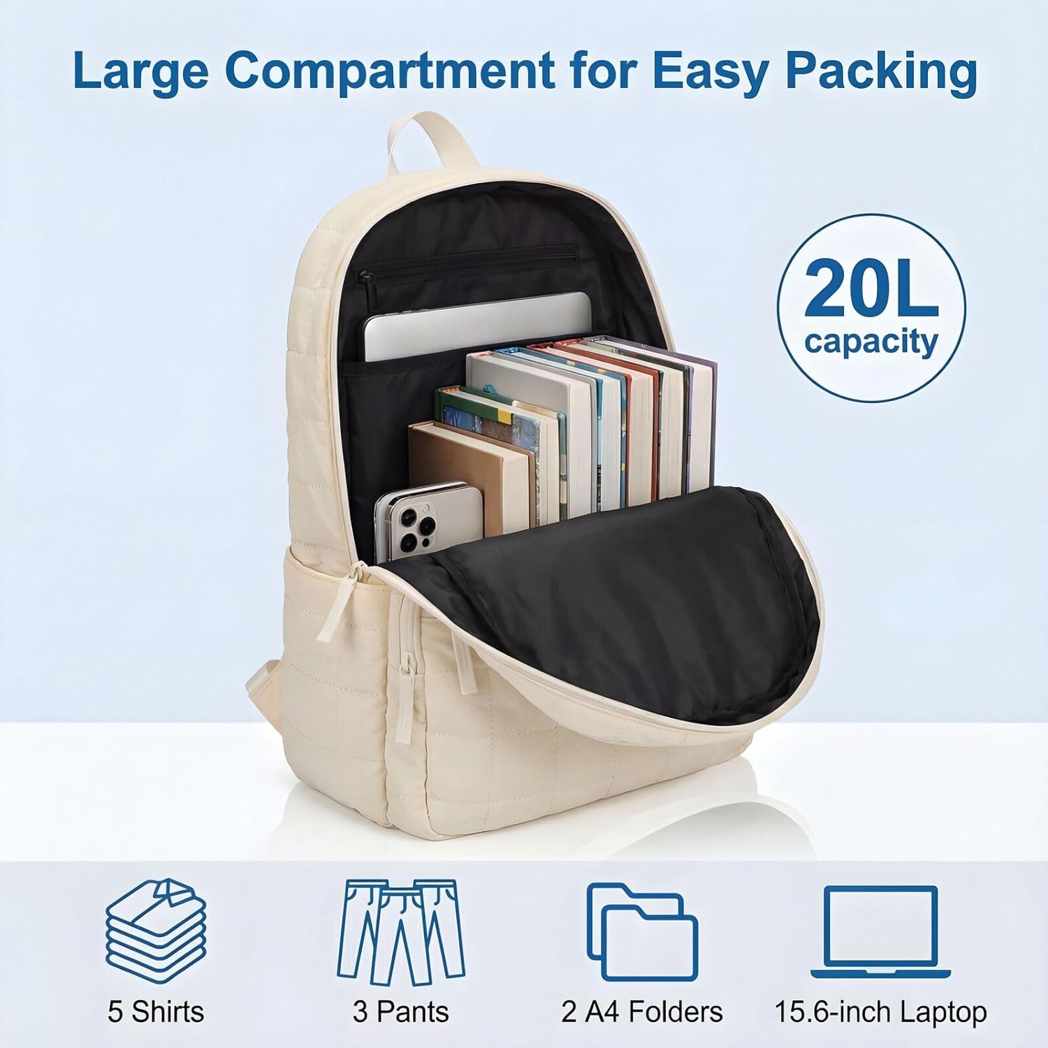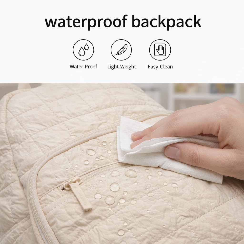 【Sturdy & Waterproof Material】: This quilted backpack made of water resistant sturdy Nylon fabric and High-quality zipper, ensuring it withstands daily wear and tear. For accidental stains, just wipe clean with a damp cloth or wet wipe (While water-resistant, it’s not fully waterproof — heavy rain could be a risk).