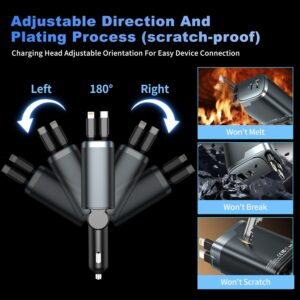 Retractable Car Charger, 84W Car Charger USB C 4 in 1, Car Accessories Fast Charging Car Charger Adapter for iPhone 17 16 15 14 13 12 Pro Max, Samsung, Pixel | Travel Essentials Gifts for Men Women