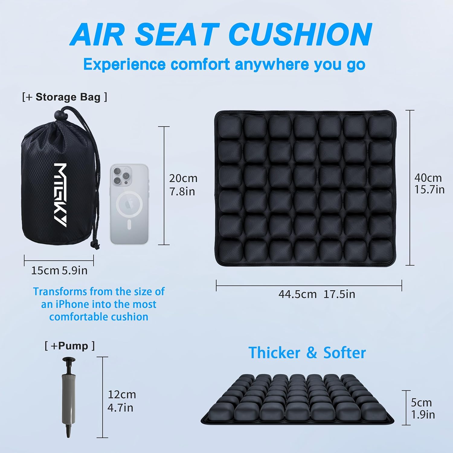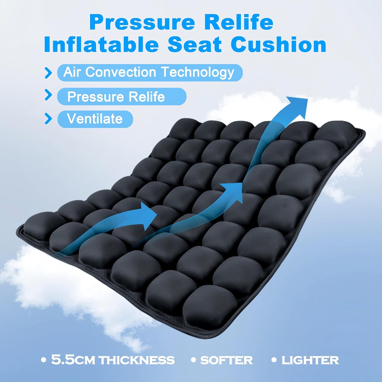 Sondor Travel Seat Cushion,Inflatable Travel Seat Cushion for Airplane,Portable & Adjustable,Airplane Gadgets,Inflatable Cushion for Wheelchair, Travel,Driving,Office Work