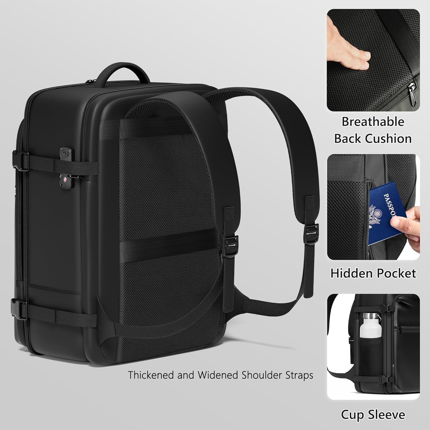 Designed for Travel: The SUOCO backpack is equipped with a TSA-approved combination lock, luggage-attachment strap, water-bottle holder, thickened and widened shoulder straps, breathable back, water-resistant and anti-scratch fabric, and premium zippers.