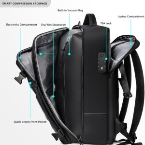 SUOCO Travel Vacuum Backpack with Portable Electric Pump, 60L Carry On Compression Seal Travel Backpack with Vacuum System, Traveling Packing Luggage Suitcase, Black