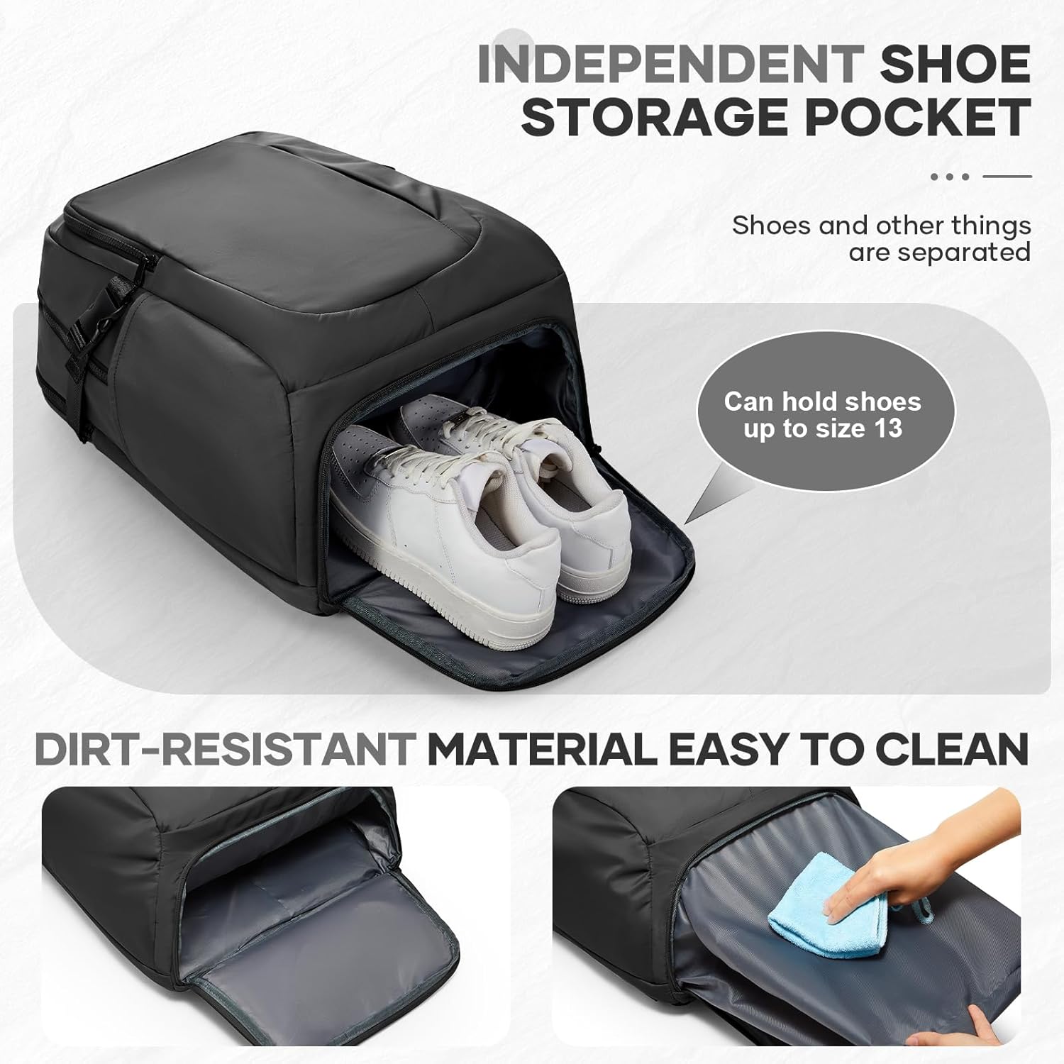 Separate Shoe Compartment & Easy-Clean Lining: A dedicated shoe compartment keeps dirty sneakers or wet gear away from your clean clothes and laptop. Inside this special pocket, the smooth lining allows you to quickly wipe away dirt or spills with a damp cloth. The easy-clean material helps maintain freshness, making this personal item backpack a reliable companion for countless adventures