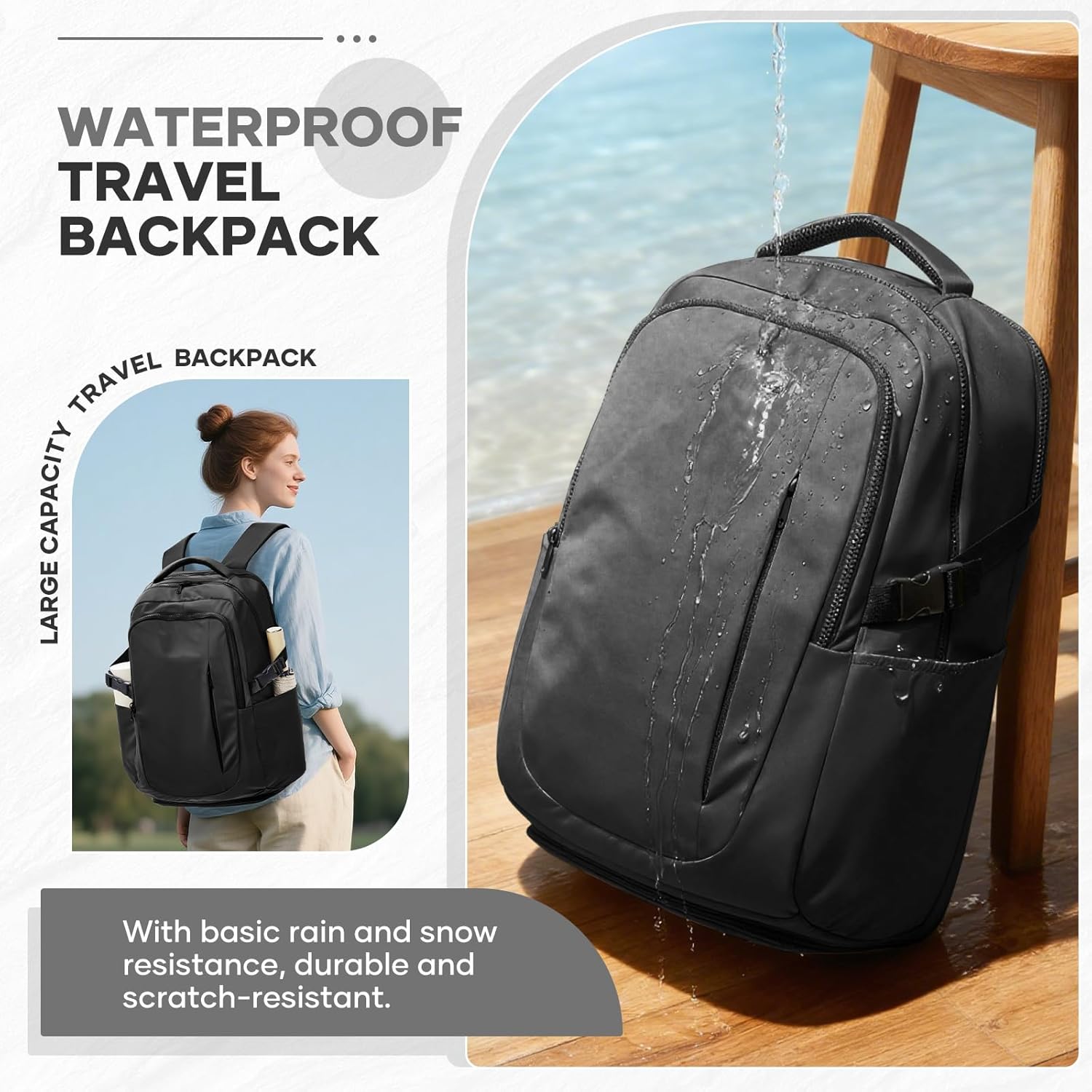 Versatile & Waterproof Design for All-Day Use: This backpacks solves the style dilemma with its sleek, neutral look that works for business trips, work, and weekend getaways. The durable, waterproof fabric causes rain and snow to bead up and roll off, protecting your gear in unpredictable weather. Its scratch-resistant material maintains a new appearance, offering a practical and stylish choice for every traveler