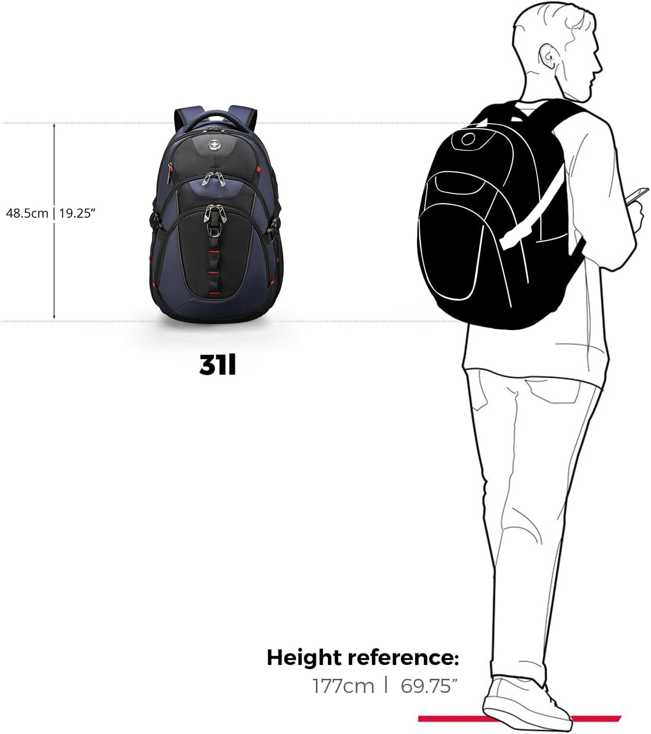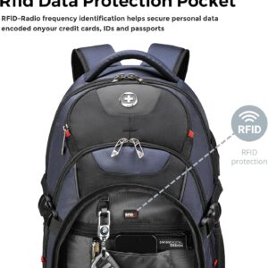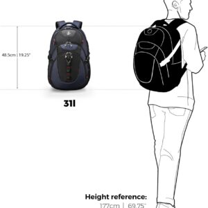 Swissdigital Design Laptop Backpack with USB Charging Port, Travel Backpack Fits 15.6 inches Computer, 31L College School Backpack for Men, Blue/Black | SD803-12 | Water Repellent
