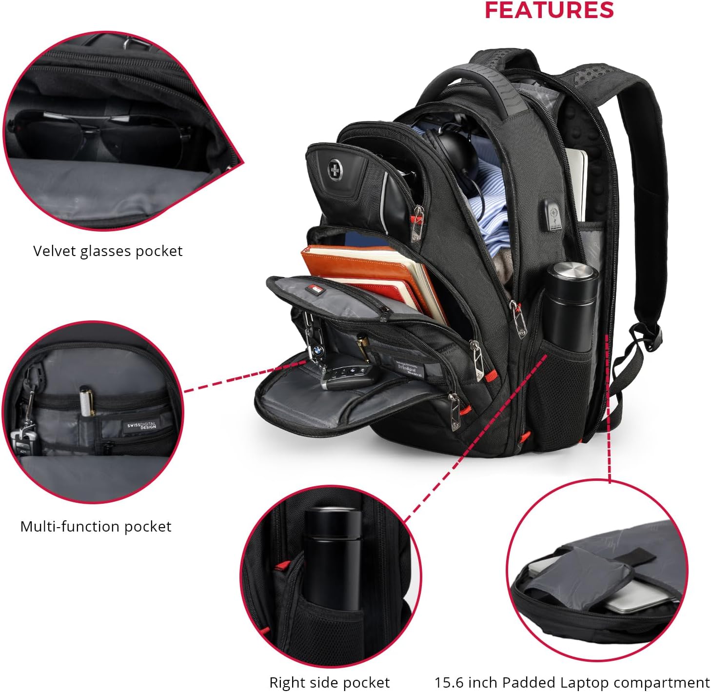 SWISS QUALITY-BUILT TO LAST: Size of an extra large college backpack: 12.5″ x 7″ x 18.5″, 1680D Polyester +210D Nylon. Includes separate padded laptop compartment ideal for all MacBook, Chromebook, and PC laptop models up to 15.6″. This business laptop backpack is made from good quality polyester fabric shockproof with high density nylon lining for better and heavy duty backpack XL laptop backpack for a stroll around the city