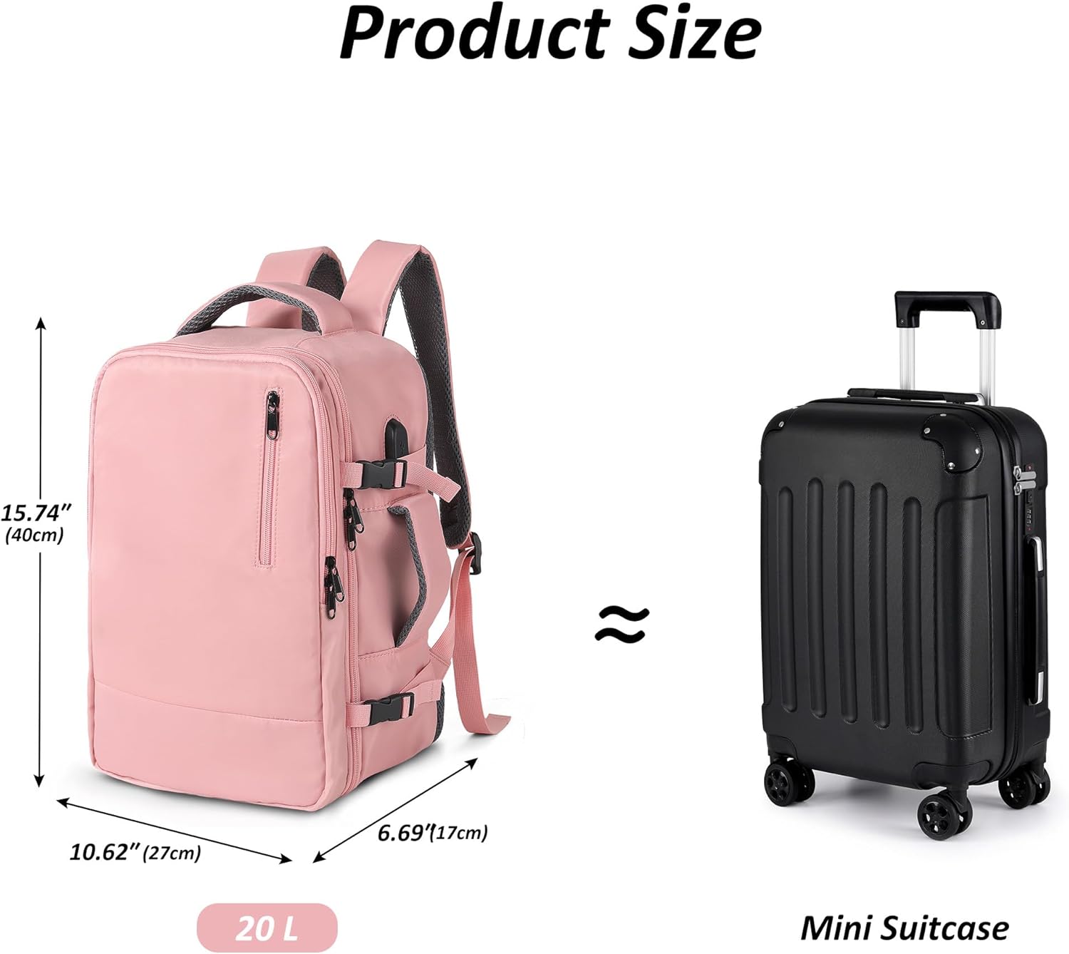 【Perfect Organized】The 20L travel backpack fits most 15.6” laptops and organizes 2-3 days of essentials. Multiple compartments dedicated spaces for items of small or big sizes—ideal for flights, work, and weekend trips