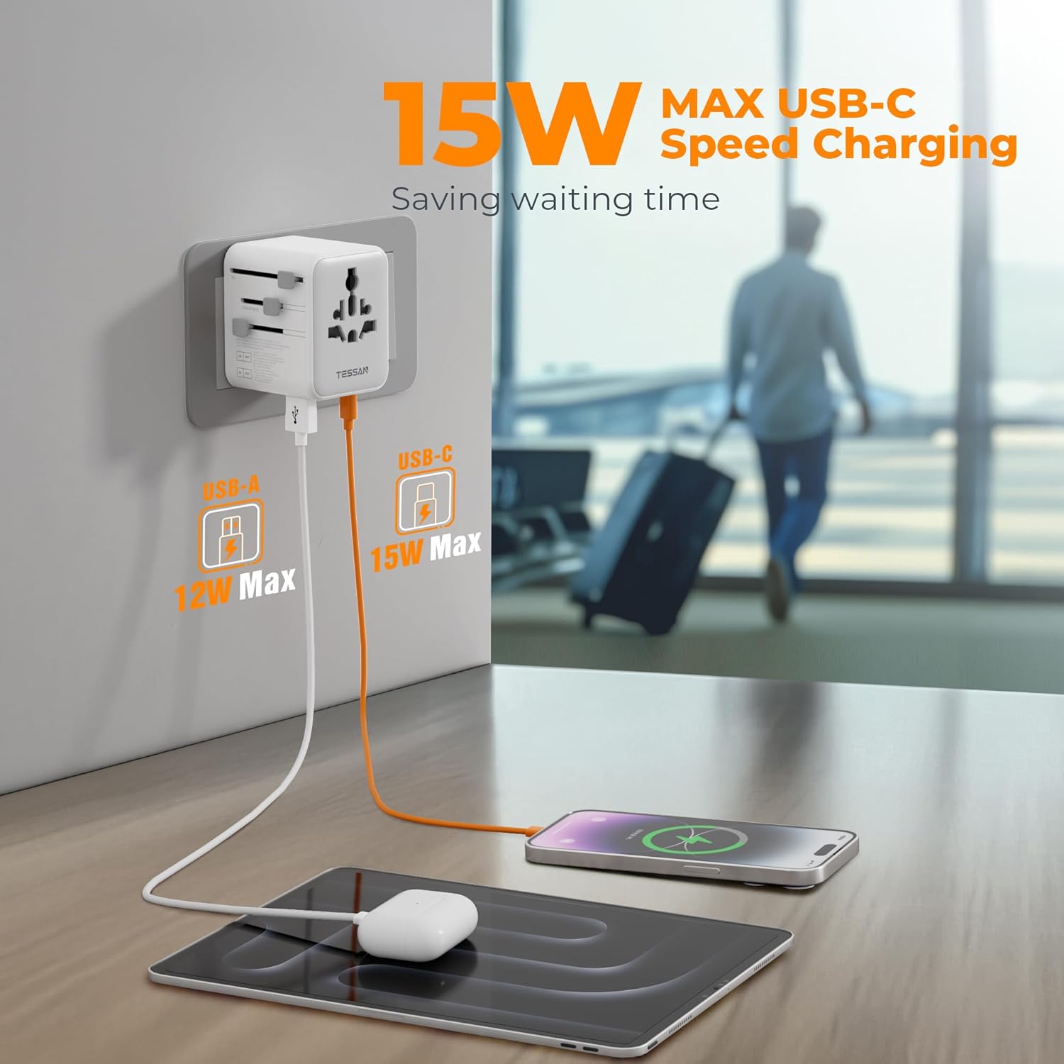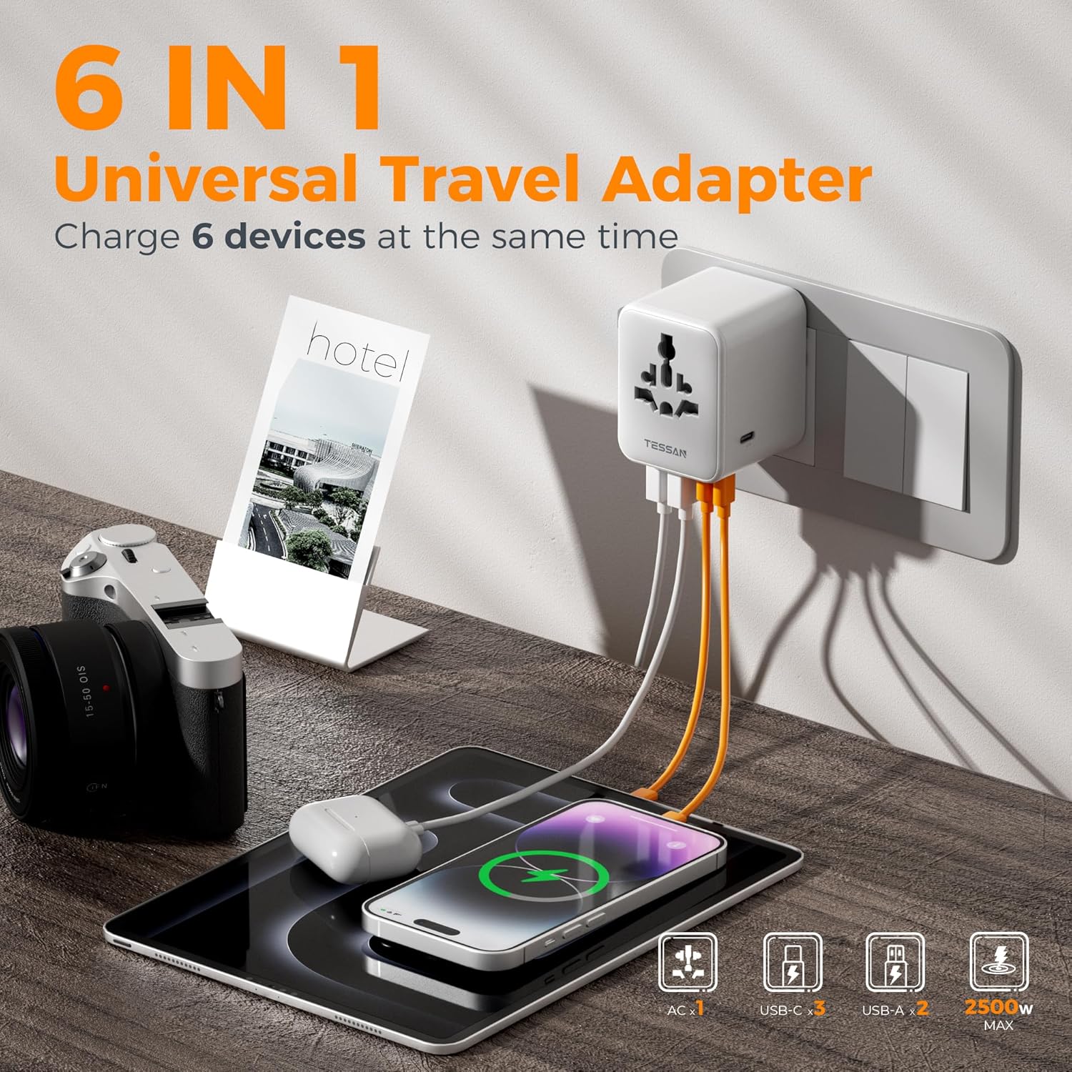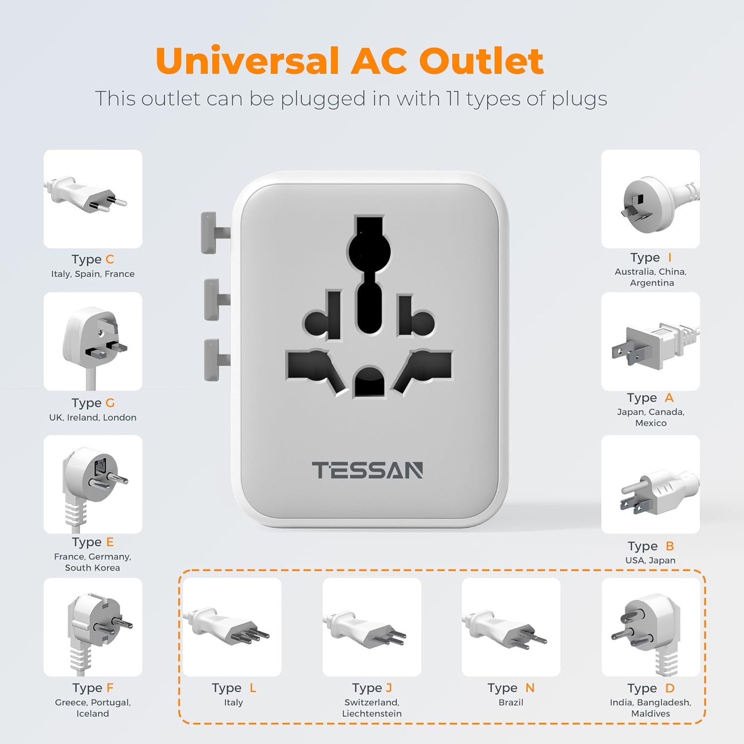 TESSAN Universal Travel Adapter 28W, International Power Adapter with 3 USB C 2 USB A Charging Ports, Worldwide Plug Adaptor for US to European UK Italy Ireland New Zealand (Type C G A I)