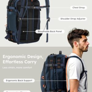 【Expandable 35L to 45L Versatility】Pack just right every time. Start the carry on backpack at 35L for daily commutes, or expand to 45L for longer trips. With dual main compartments, two large aluminum wet/dry dividers, and smart organization, this expandable versatile travel backpack adapts to gym days, overnighters, and beyond, without ever feeling bulky