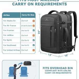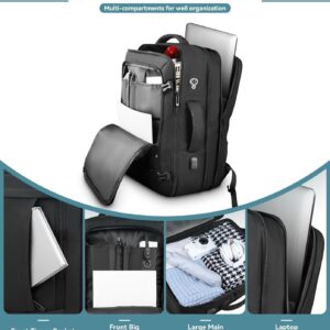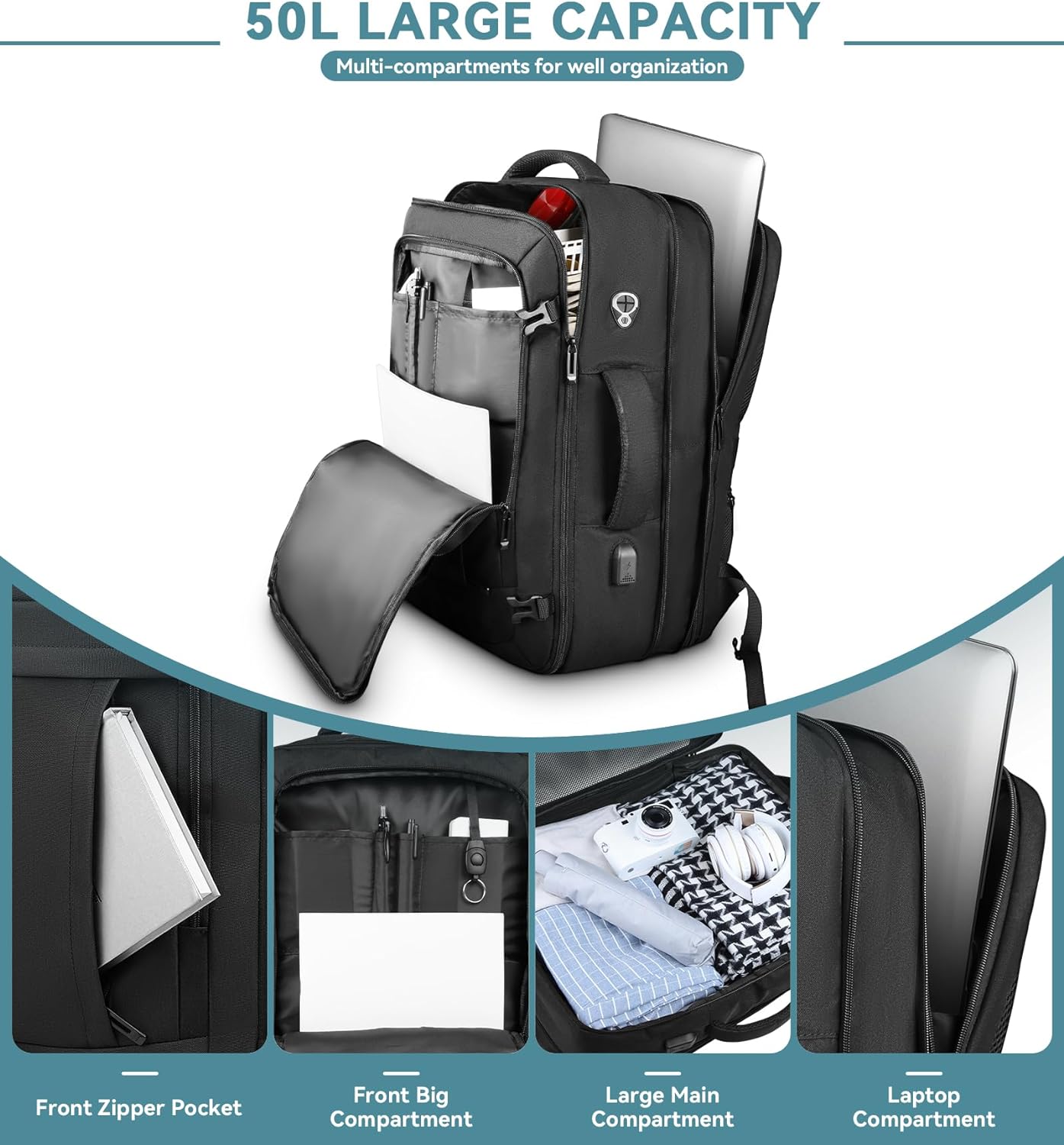 Travel Backpack, 50L Expandable Extra Large Laptop Backpack, Carry On Backpack Water Resistant Business Suitcase Daypack Bag Fits 17 Inch Laptops, Travel Gifts for Men Women, Black