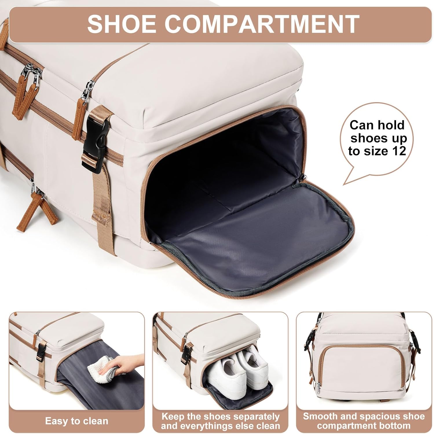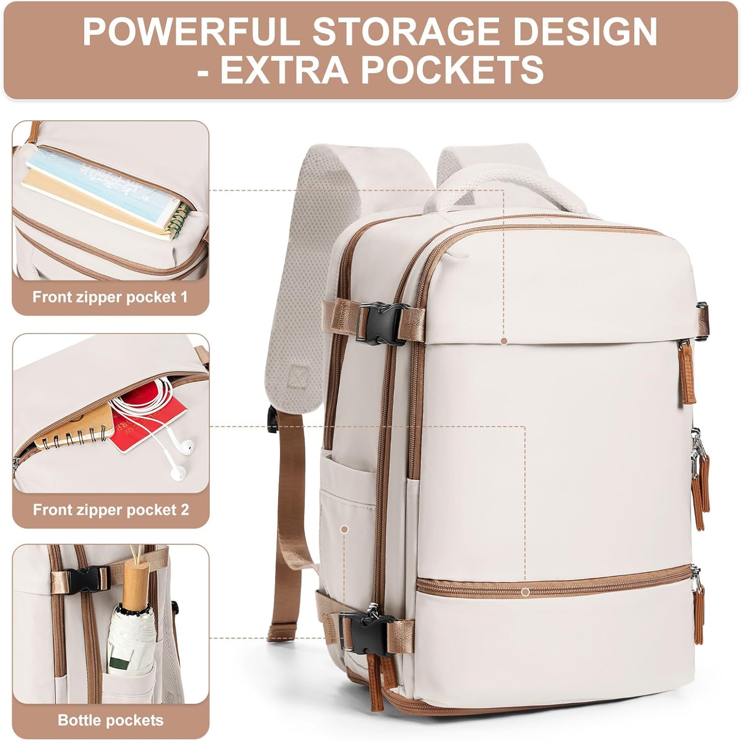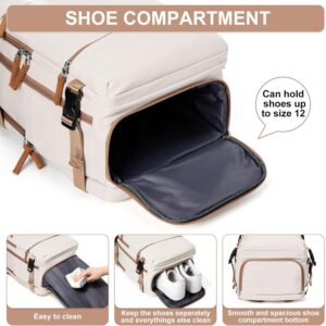 Travel Backpack Simple Durable Carry On Backpack with Shoe Compartment, Personal Item Travel Bag Flight Approved, Water Resistant Laptop Backpack for Women Men Weekender Business, Beige