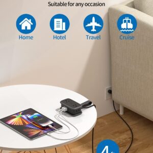 Travel Power Strip with USB Ports, NTONPOWER 4ft Flat Plug Wrapped Around Short Extension Cord with 4 Outlets 3 USB Ports, Compact for Cruise Travel Essential Hotel Home Office, Black