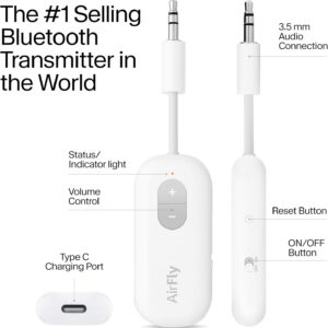 Twelve South AirFly SE | Bluetooth Wireless Audio Transmitter Adapter for AirPods/Headphones, 20+ Hr Battery, Works with 3.5mm aux Jacks on Airplanes, TVs, Gym Equipment, and Travel