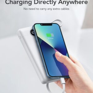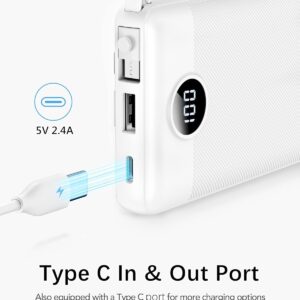【Portable Charger Built-in 4 Cables】Built in cable compatible with iPhone 16/15/14/13/X/XR, Samsung Galaxy S24/S23/S22/S21/S10/S9/S8/Galaxy A51/52/53/54/55/Note 20/10, Google Pixel series, and more USB-C devices. directly charging in anywhere,also built in USB cable for charging power bank itself, you don’t need take any cords when going out and travel.